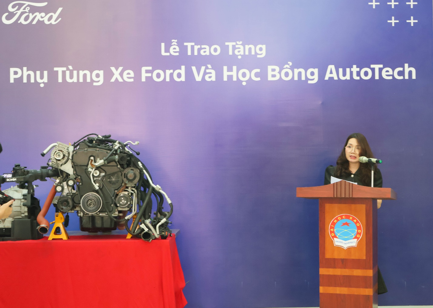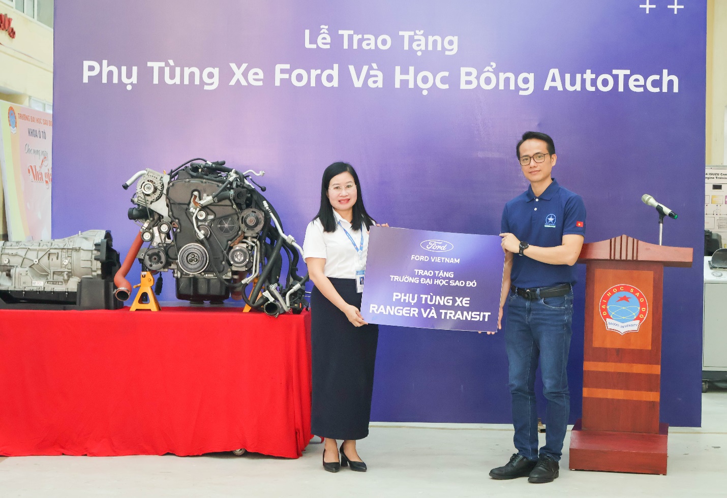 Đại diện doanh nghiệp, bà Hoàng Thị Thanh Tâm – Phó Tổng Giám đốc Ford Việt Nam cho biết: Ford luôn coi phát triển nguồn nhân lực là một trong những chiến lược trọng tâm trong các hoạt động trách nhiệm xã hội. Việc hỗ trợ thiết bị đào tạo và trao học bổng không chỉ giúp sinh viên có điều kiện học tập tốt hơn mà còn góp phần xây dựng đội ngũ kỹ thuật viên chất lượng cao cho ngành ô tô Việt Nam trong tương lai. Bà khẳng định Ford Việt Nam sẽ tiếp tục mở rộng hợp tác với các cơ sở đào tạo, trong đó Trường Đại học Sao Đỏ là một đối tác quan trọng.