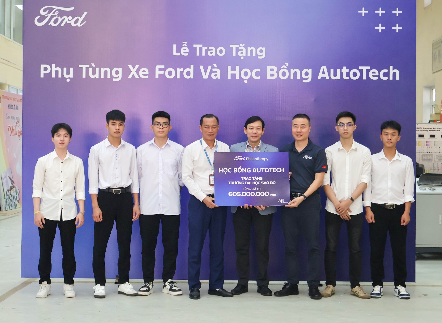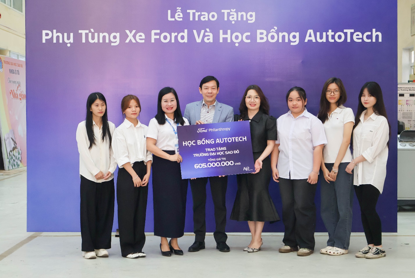 Triển khai thỏa thuận tài trợ giữa Quỹ Phòng chống Thương vong châu Á (AIP Foundation), Ford Việt Nam và Trường Đại học Sao Đỏ với tổng kinh phí 605.000.000 đồng bao gồm: học bổng; hỗ trợ thực tập và cải tạo trung tâm thực hành-thực nghiệm khoa Ô tô. Tại chương trình Ford Việt Nam và Tổ chức AIP Foundation đã trao 20 suất học bổng AutoTech (08 suất dành cho sinh viên nữ khối ngành kỹ thuật; 12 suất dành cho sinh viên ngành Công nghệ kỹ thuật ô tô) với tổng kinh phí 260 triệu đồng; hỗ trợ 15 sinh viên năm cuối ngành Công nghệ kỹ thuật ô tô thực tập tại các đại lý Ford trong 3,5 tháng với tổng kinh phí trên 262 triệu đồng; hỗ trợ cải tạo khu thực hành – thực nghiệm ô tô (X3), nâng cấp hệ thống chiếu sáng nhằm bảo đảm điều kiện học tập, đo kiểm kỹ thuật chính xác với tổng trị giá trên 82 triệu đồng.