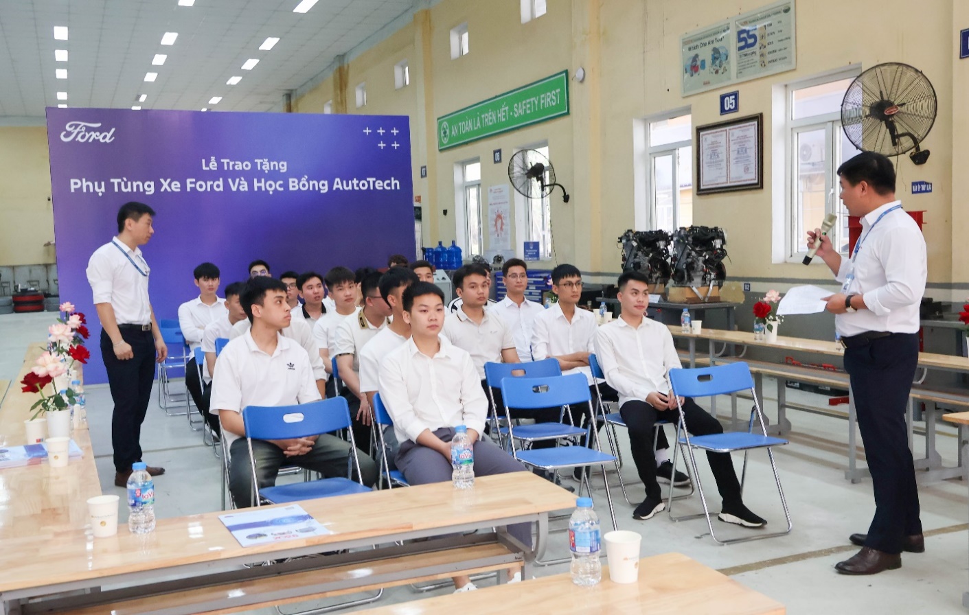Tại chương trình, Ford Việt Nam đã trao tặng Nhà trường 01 động cơ, 02 hộp số và 03 cánh cửa ô tô phục vụ trực tiếp các học phần thực hành động cơ, truyền lực và hệ thống gầm. Thiết bị giúp sinh viên tiếp cận công nghệ thực tế, nâng cao năng lực thực hành và chuẩn đoán kỹ thuật.