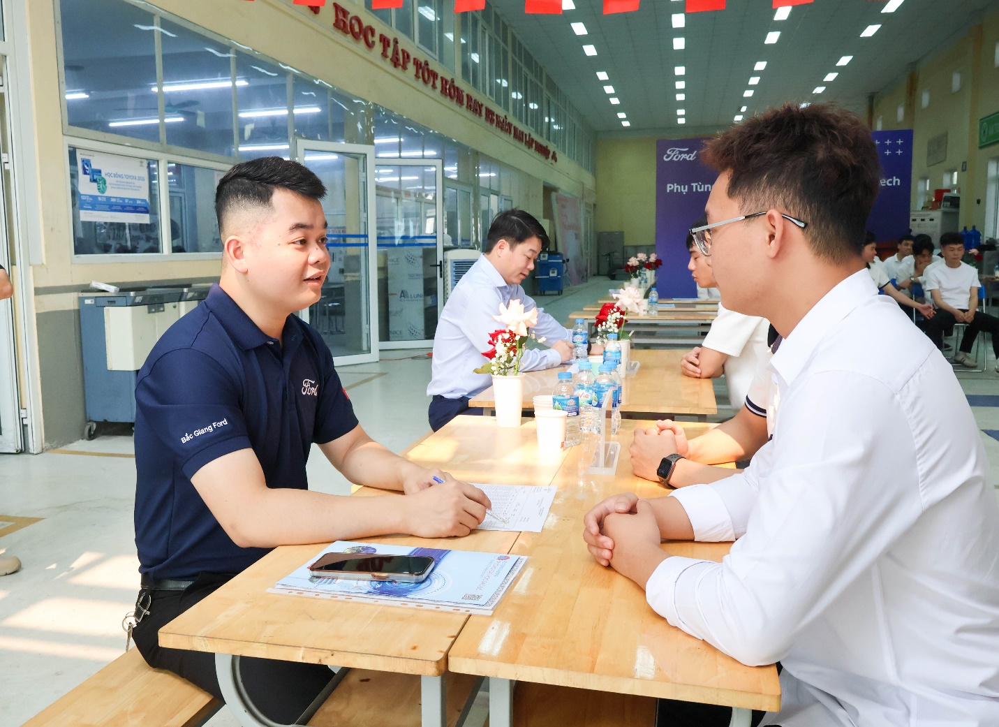 Chương trình cũng tạo điều kiện để sinh viên khóa 13 ngành Công nghệ kỹ thuật ô tô tham gia phỏng vấn thực tập trực tiếp với các đại lý Ford, mở ra cơ hội tiếp cận môi trường làm việc chuyên nghiệp ngay từ khi còn ngồi trên ghế nhà trường.