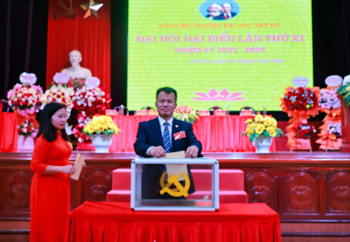Với tinh thần dân chủ, đoàn kết Đại hội đã bầu Ban Chấp hành Đảng bộ Trường Đại học Sao Đỏ khóa XI nhiệm kỳ 2025-2030 gồm 13 đồng chí có đủ năng lực, trình độ chuyên môn và phẩm chất chính trị. Với uy tín và năng lực lãnh đạo quản lý, NGƯT.TS. Nguyễn Trọng Các - Bí thư Đảng ủy khóa X, Chủ tịch Hội đồng trường được Đại hội tín nhiệm bầu làm Bí thư Đảng ủy khóa XI với số phiếu rất cao.