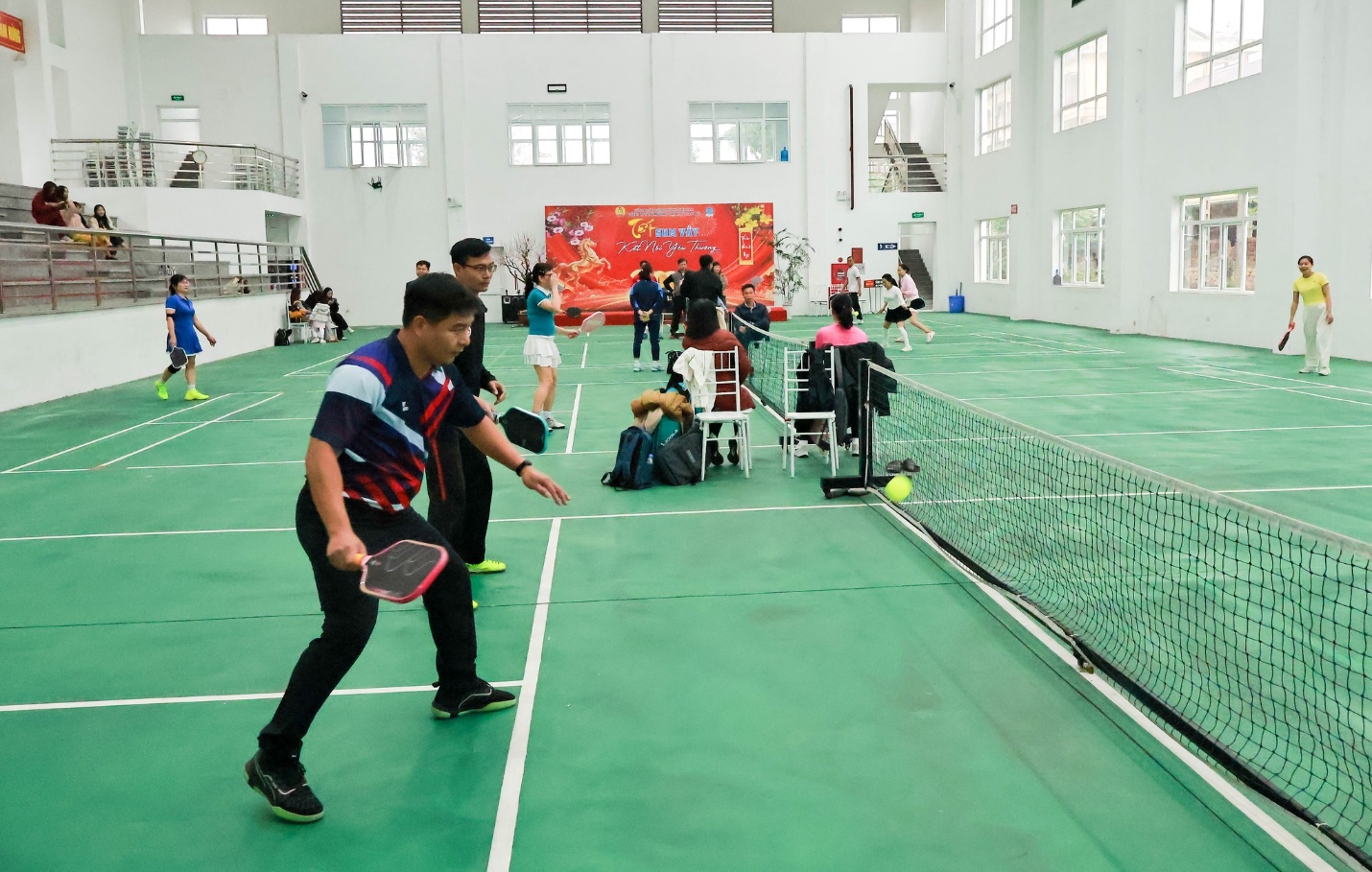 Nằm trong chuỗi hoạt động của Tết sum vậy, Nhà trường tổ chức các hoạt động giao lưu pickleball; nhảy dân vũ và các trò chơi dân gian: kéo co, nhảy bao bố, nhảy dây... dành cho gia đình viên chức, người lao động thu hút đông đảo dâu, rể và con em các gia đình tham gia. Trên nền nhạc Xuân rộn ràng, những bước nhảy mềm mại, linh hoạt mang đến sự tươi trẻ, phóng khoáng và tràn ngập sắc Xuân tạo nên không khí vui tươi, tràn đầy hứng khởi. Các hoạt động diễn ra sôi nổi, tràn đầy tiếng cười của trẻ thơ và các bố mẹ, thắt chặt tình đoàn kết, gắn bó giữa các đơn vị phòng, khoa trong Nhà trường.