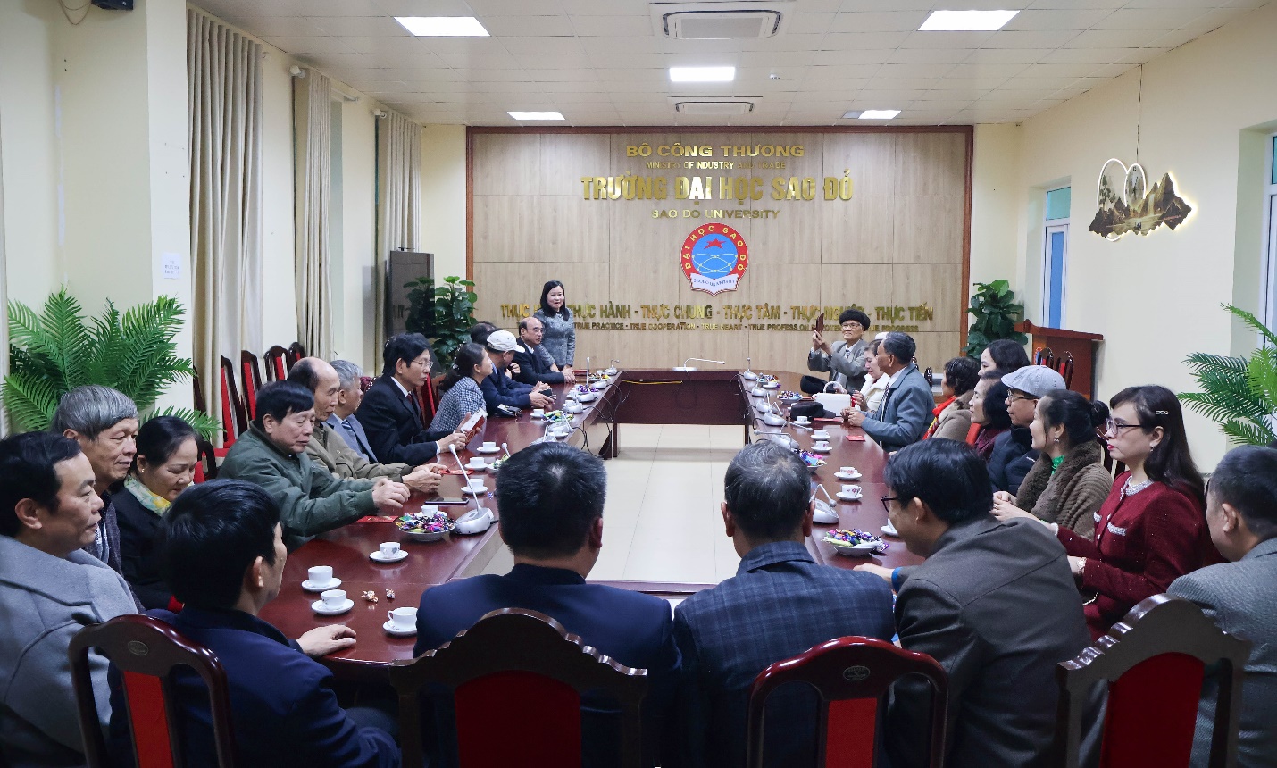 NGƯT. TS. Nguyễn Thị Kim Nguyên – Bí thư Đảng ủy, Hiệu trưởng Nhà trường chúc Tết các đồng chí nguyên là lãnh đạo, cán bộ quản lý Nhà trường qua các thời kỳ