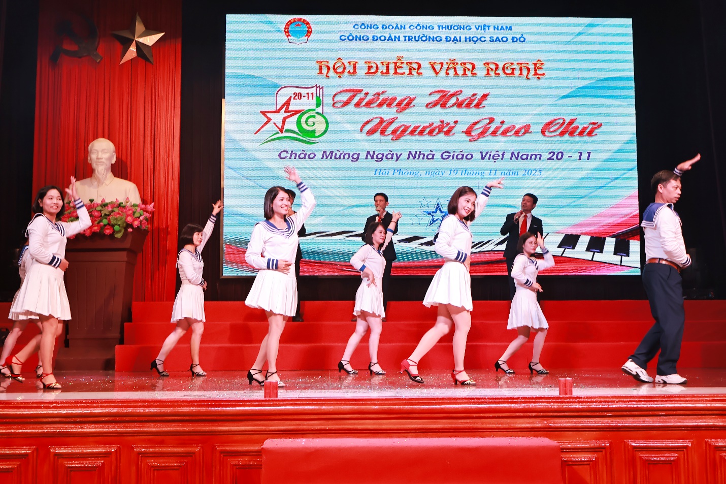 Hội diễn văn nghệ năm nay có 14 tiết mục đến từ các Tổ công đoàn liên phòng, liên khoa bao gồm những tiết mục hát tốp ca, đơn ca, song ca, múa... ca ngợi Đảng, Bác Hồ, quê hương, đất nước, mái trường và những người thầy, người cô như các ca khúc: Người lái đò thầm lặng; Nghề giáo tôi yêu; Một đời người một rừng cây; Mushup - Hành trình người gieo chữ; Mushup - Đất Việt tiếng vọng ngàn đời, Hào khí Việt Nam; Hãy đến với con người Việt Nam tôi... các tiết mục được dàn dựng công phu mang đậm tính nghệ thuật, Hòa chung vào âm nhạc sôi động, khán giả đã khuấy động không khí vui tươi, sôi nổi để lại dấu ấn sâu đậm trong lòng mỗi người trong đêm diễn.
