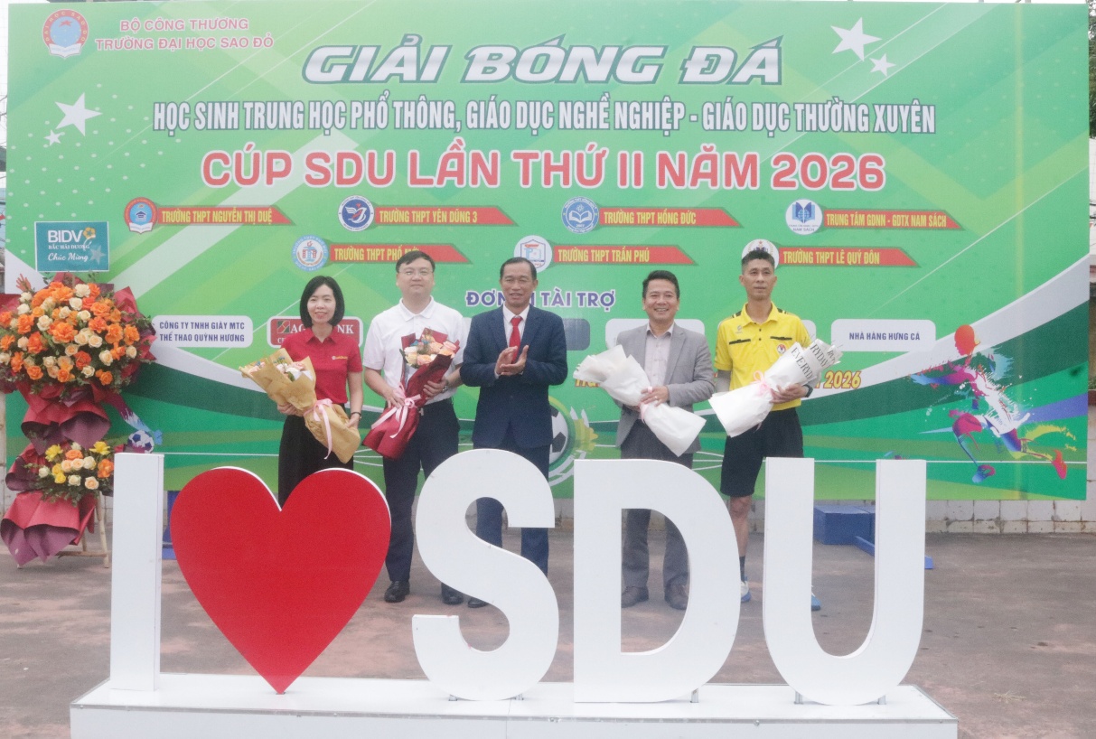 Phát biểu khai mạc TS. Đỗ Văn Đỉnh – Phó Bí thư Đảng ủy, Phó Hiệu trưởng Trường Đại học Sao Đỏ khẳng định: Giải bóng đá học sinh THPT; TT GDNN-GDTX Cúp SDU lần thứ II năm 2026, không chỉ là sân chơi thể thao lành mạnh mà còn là cơ hội để học sinh các trường THPT được giao lưu và học hỏi kinh nghiệm; thắt chặt tinh thần đoàn kết giữa các trường. Ban tổ chức mong muốn, thông qua giải đấu sẽ thúc đẩy phong trào thể dục, thể thao trong các trường THPT, TTGDNN-GDTX, giúp các em học sinh có cơ hội để rèn luyện sức khỏe, thể hiện tài năng và xây dựng tinh thần đồng đội.