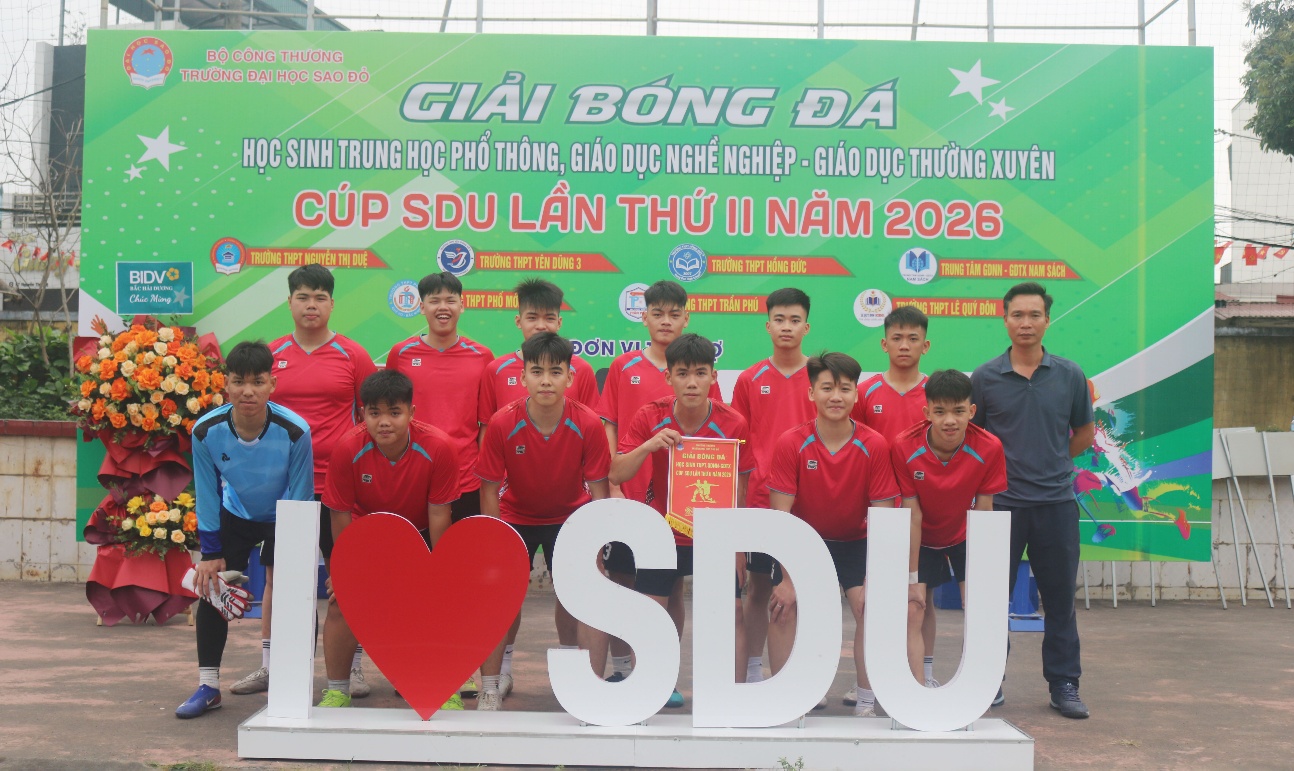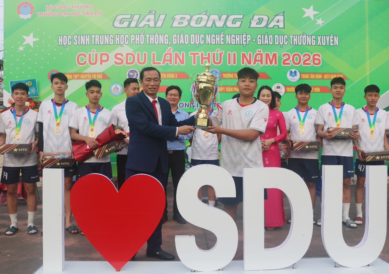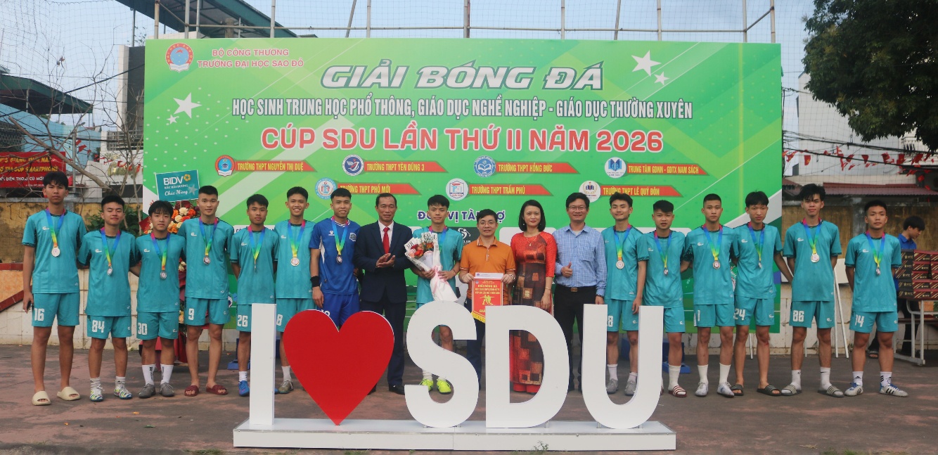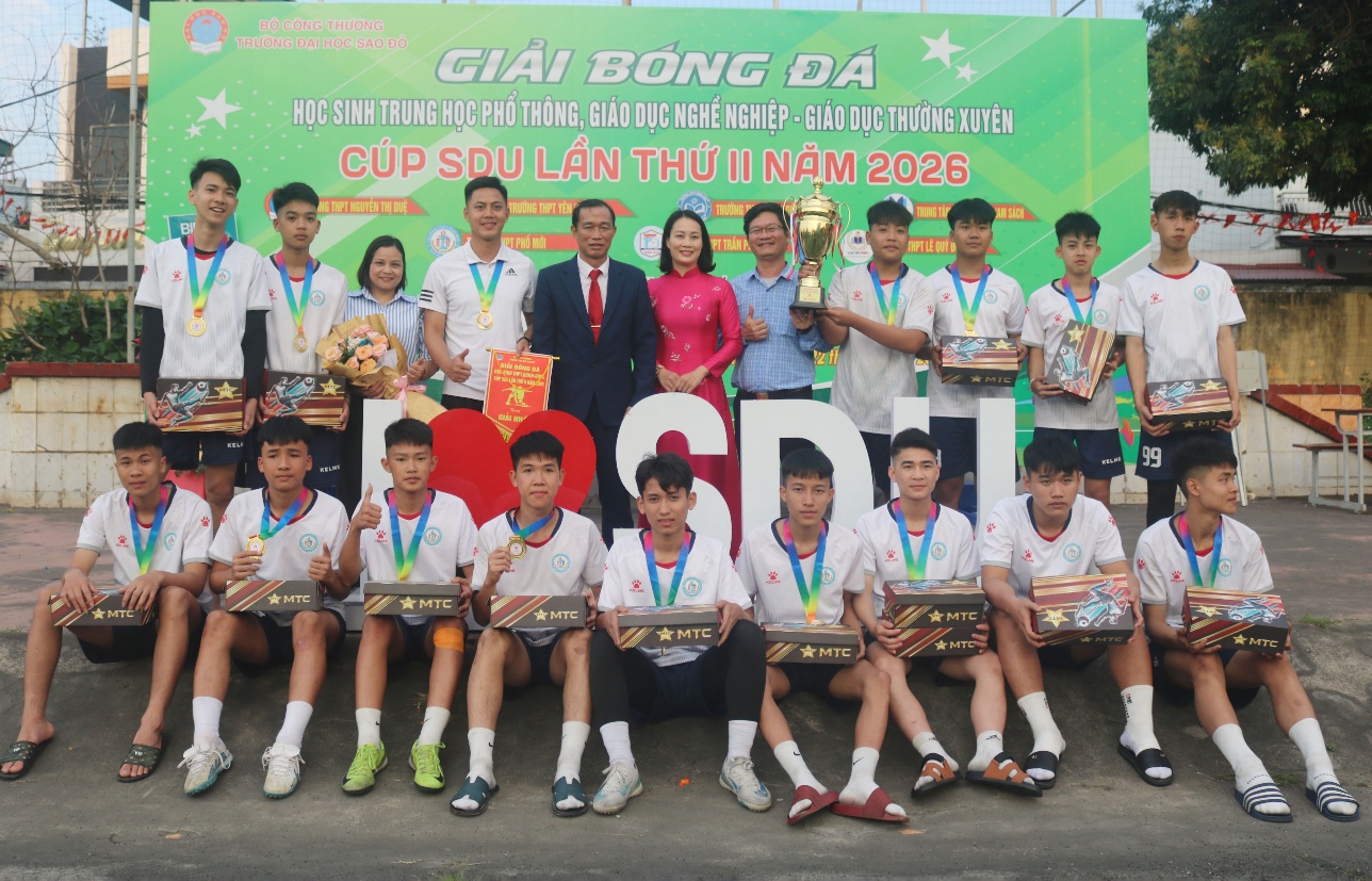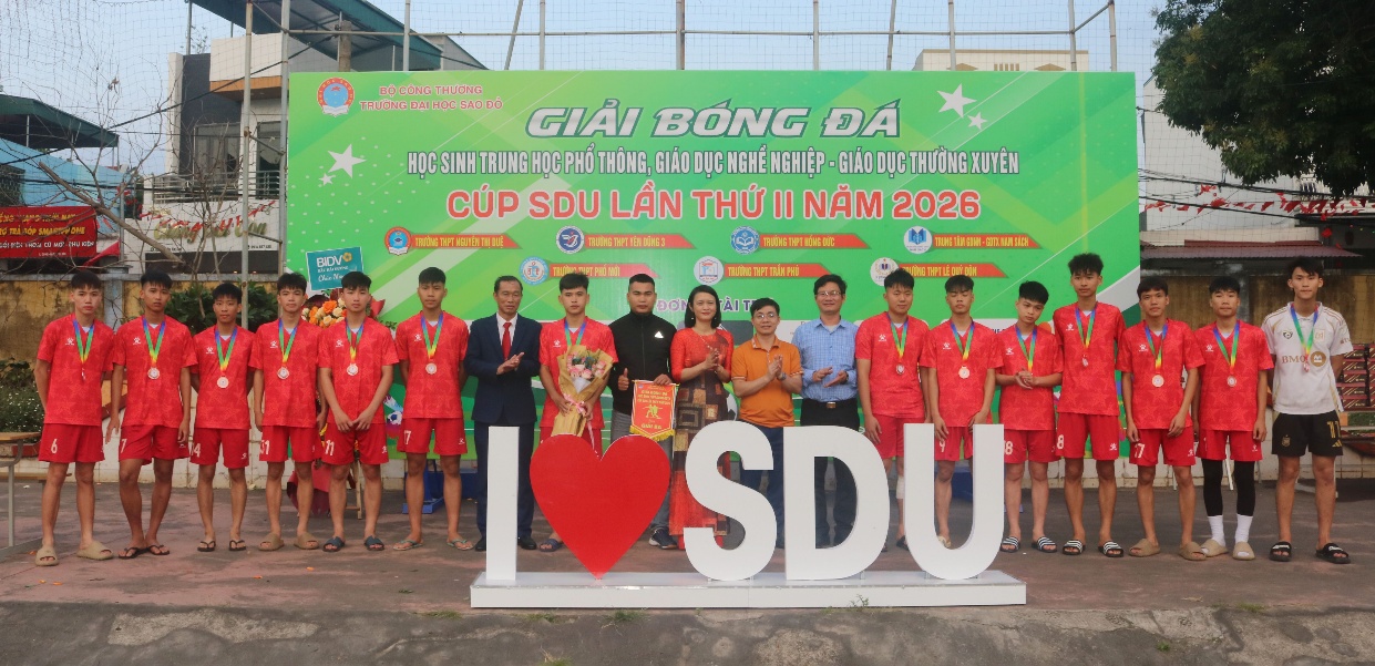 Với sự chuẩn bị và công tác tổ chức chuyên nghiệp, bài bản, cùng sự đồng hành của các đơn vị tài trợ “Giải bóng đá học sinh THPT, TT GDNN-GDTX cup SDU lần thứ II năm 2026” đã thành công tốt đẹp! góp phần nâng cao chất lượng giáo dục và đào tạo của ngành giáo dục.