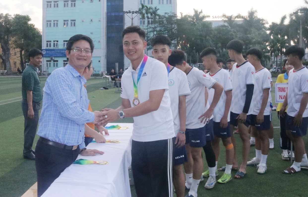 Ban tổ chức trao giải Ba cho đội bóng TT GDNN-GDTX Nam Sách