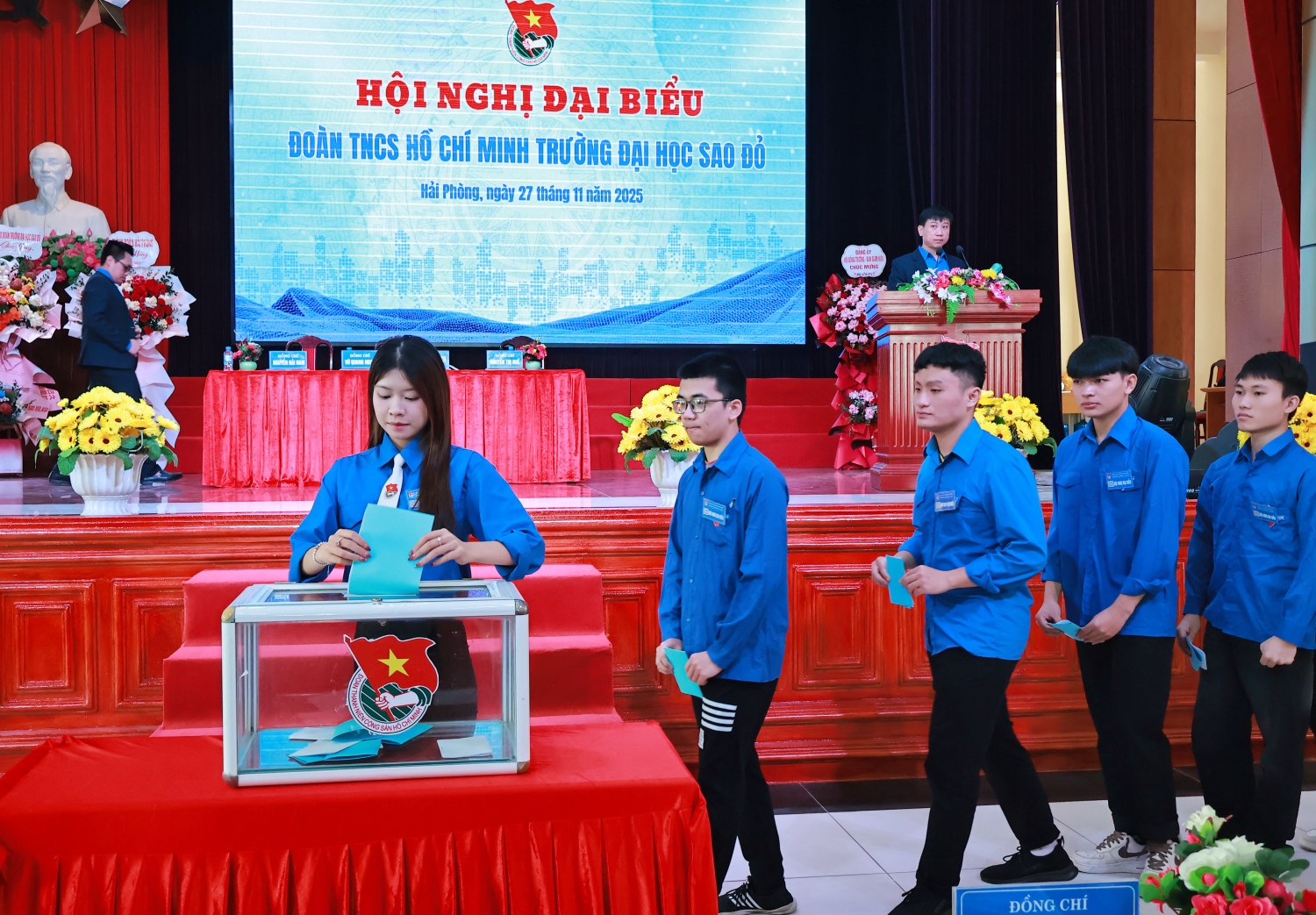 Sáng ngày 27/11/2025, Đoàn TNCS Hồ Chí Minh tổ chức Hội nghị Đại biểu Đoàn TNCS Hồ Chí Minh Trường Đại học Sao Đỏ, đây là đợt sinh hoạt chính trị trong toàn thể đoàn viên, sinh viên Nhà trường. Nhằm đánh giá tổng kết những kết quả đạt được trong thời gian qua, đồng thời đề ra phương hướng, giải pháp để nâng cao chất lượng hoạt động trong thời gian tiếp theo.