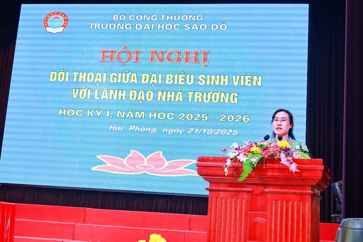 Tại Hội nghị, TS. Nguyễn Thị Nhan - Phó Trưởng phòng Công tác sinh viên báo cáo kết quả giải quyết kiến nghị của sinh viên sau đối thoại học kỳ II, năm học 2024 - 2025. Tất cả các kiến nghị của sinh viên đã được lãnh đạo Nhà trường cùng các đơn vị phòng, khoa giải quyết nhanh chóng và kịp thời, phục vụ tốt cho quá trình học tập, rèn luyện của sinh viên.