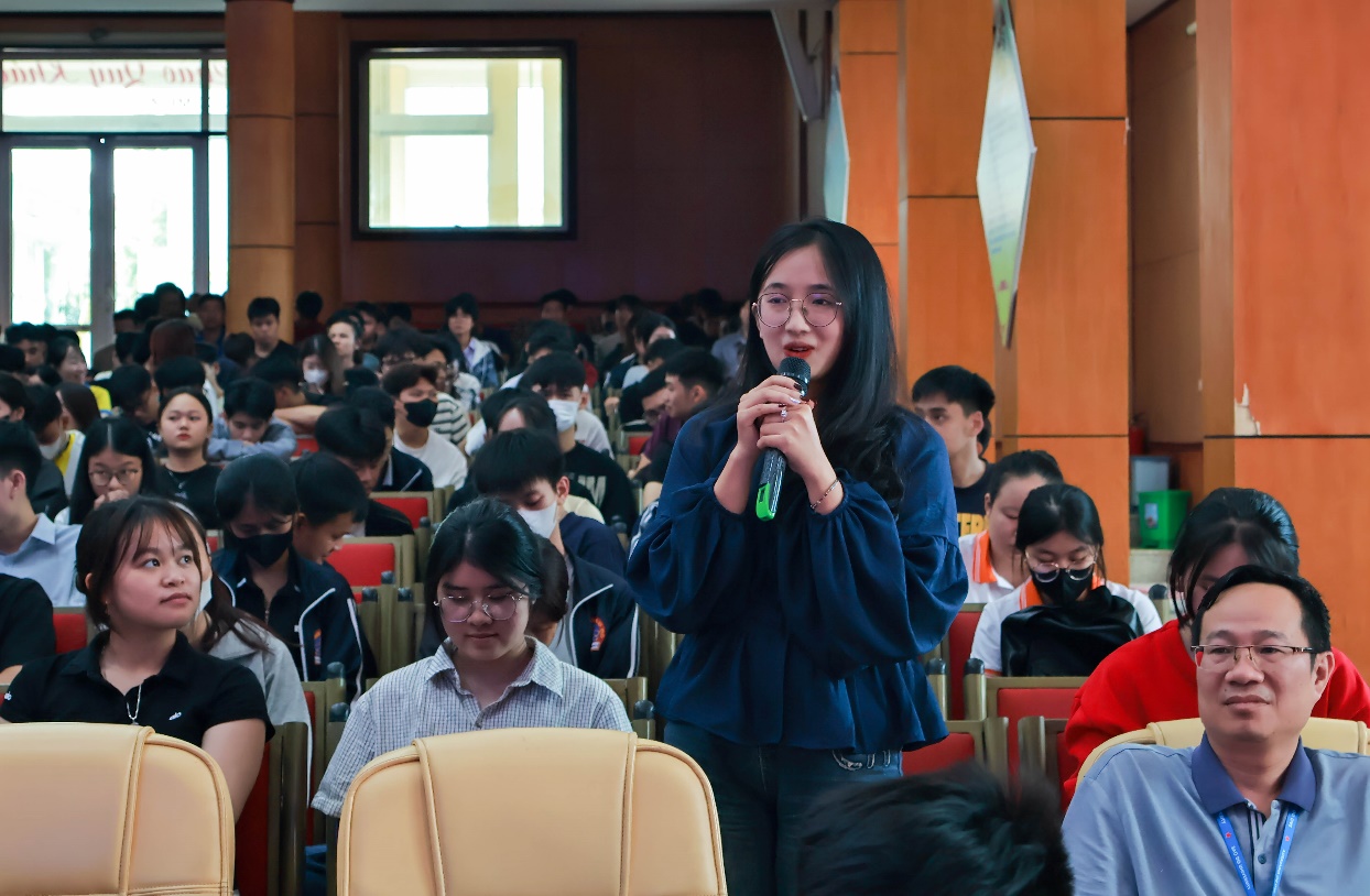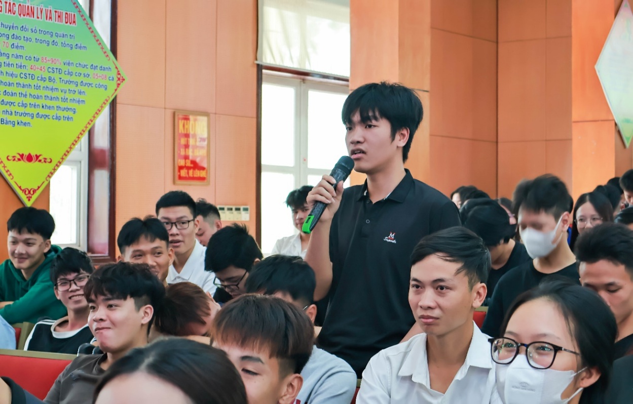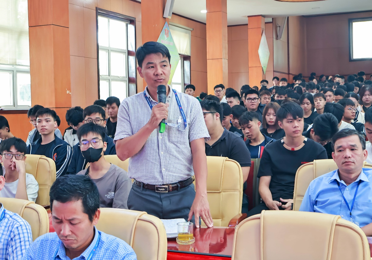 Trong phần đối thoại, với tinh thần dân chủ, cởi mở, lãnh đạo Nhà trường đã được nghe 20 ý kiến phát biểu của các đại biểu sinh viên trao đổi và đề xuất với lãnh đạo Nhà trường về các vấn đề: Hoạt động đào tạo; cơ sở vật chất phục vụ học tập; quản lý, giáo dục sinh viên; công tác Đoàn và phong trào thanh niên; hoạt động kết nối và phục vụ cộng đồng… TS. Đỗ Văn Đỉnh – Phó Hiệu trưởng đã lắng nghe và cùng các phòng, khoa giải đáp những ý kiến của sinh viên.