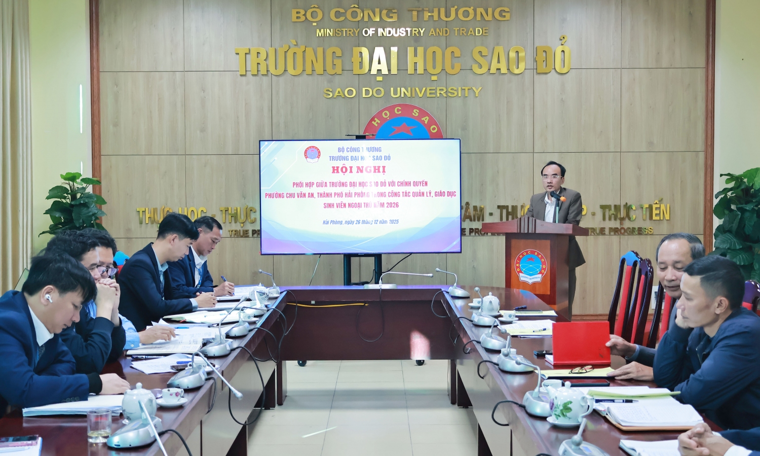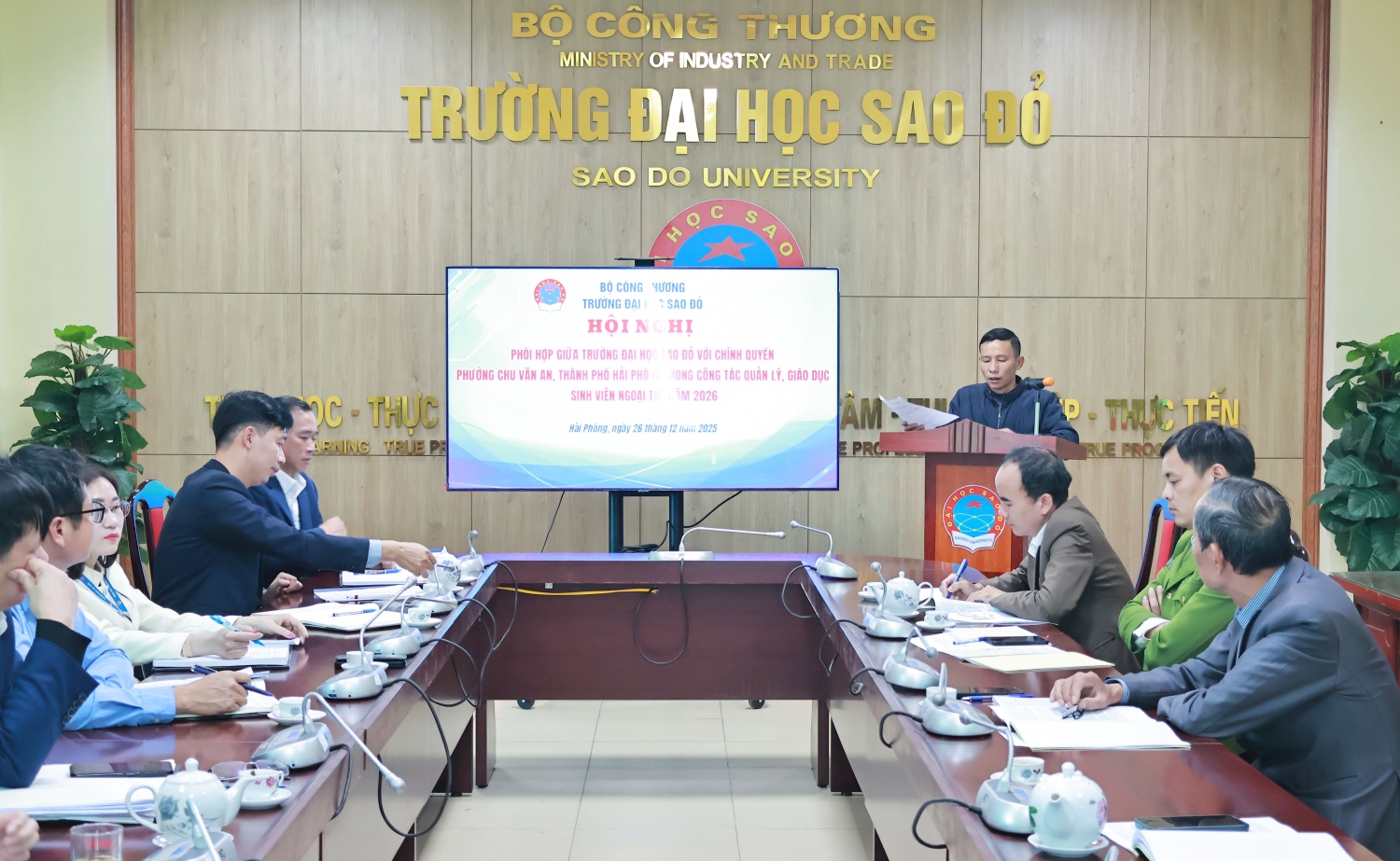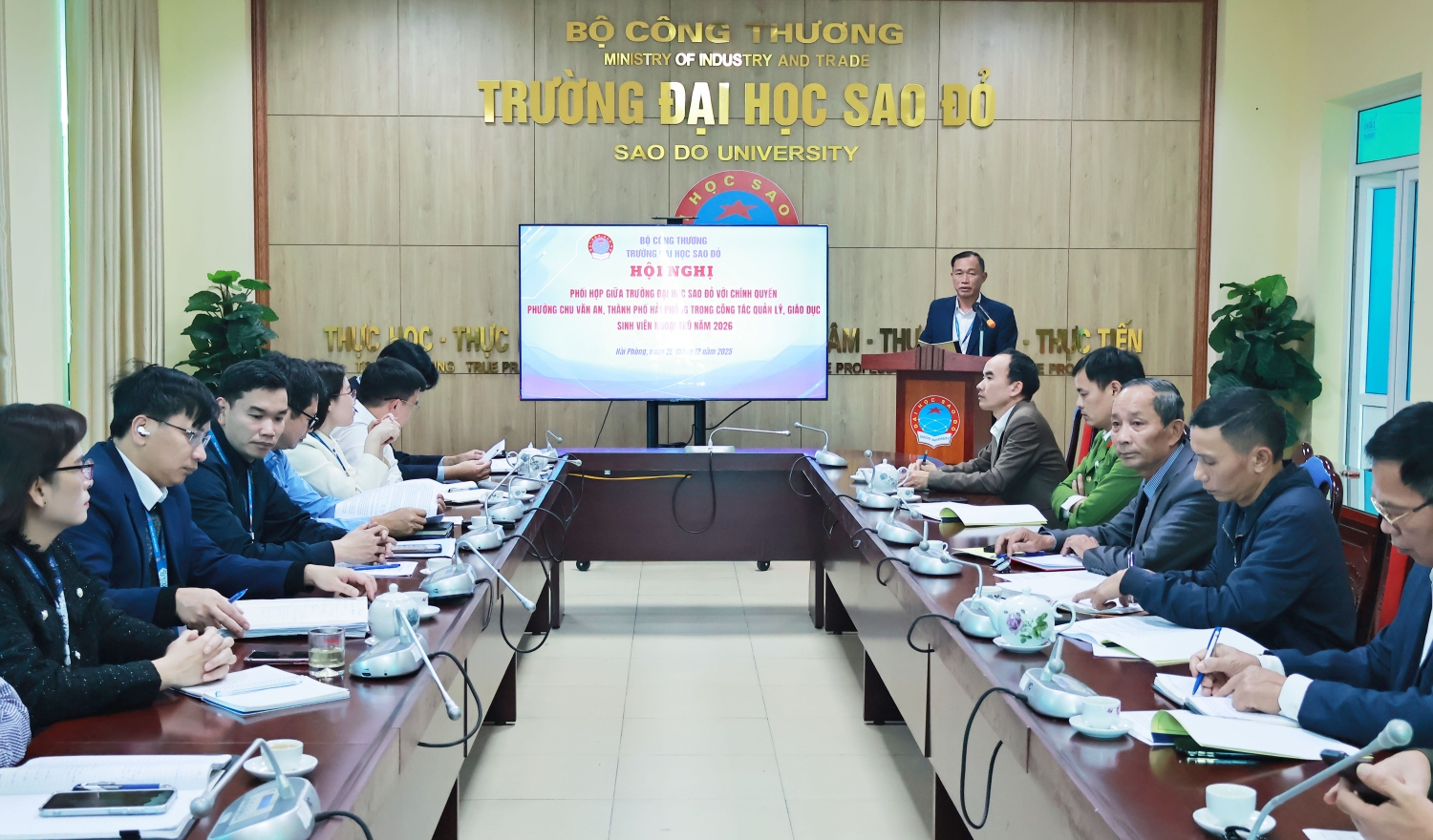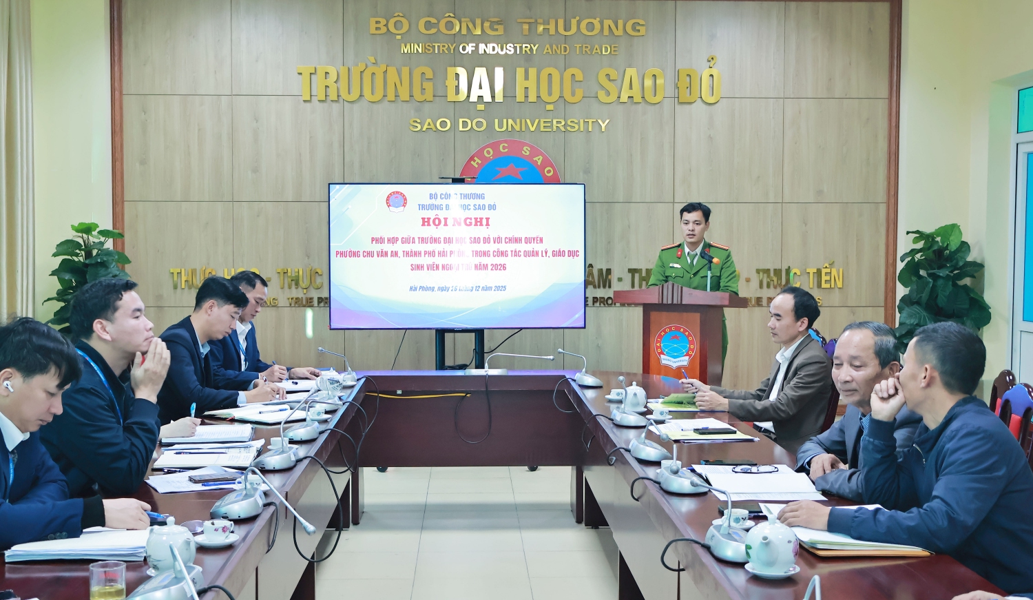 Ngày 26/12/2025, Trường Đại học Sao Đỏ tổ chức Hội nghị phối hợp giữa Nhà trường với chính quyền phường Chu Văn An, thành phố Hải Phòng trong công tác quản lý, giáo dục sinh viên ngoại trú năm 2026, góp phần nâng cao chất lượng đào tạo toàn diện.