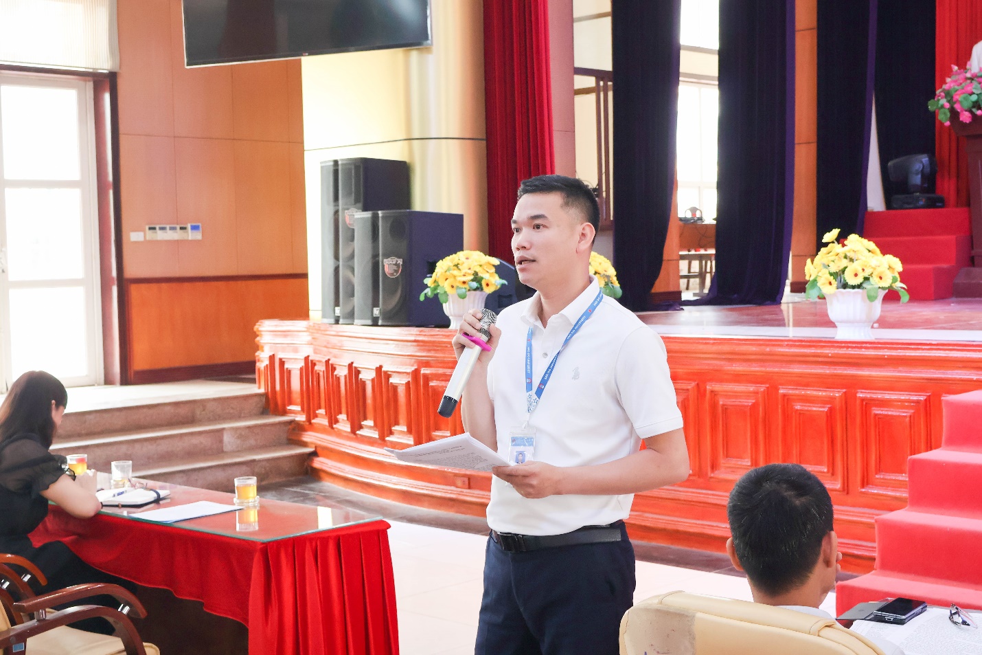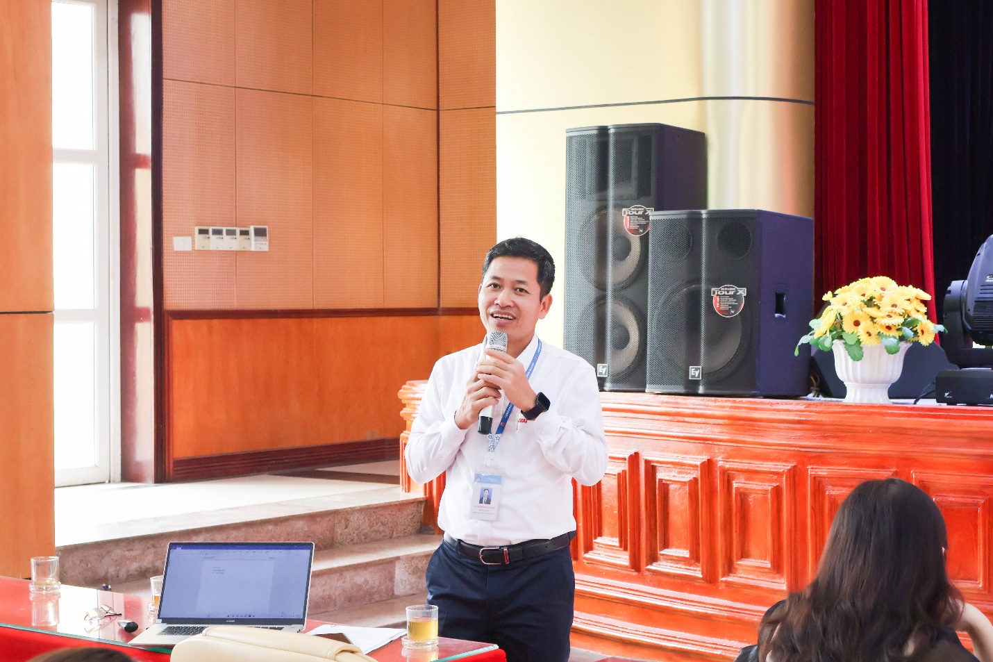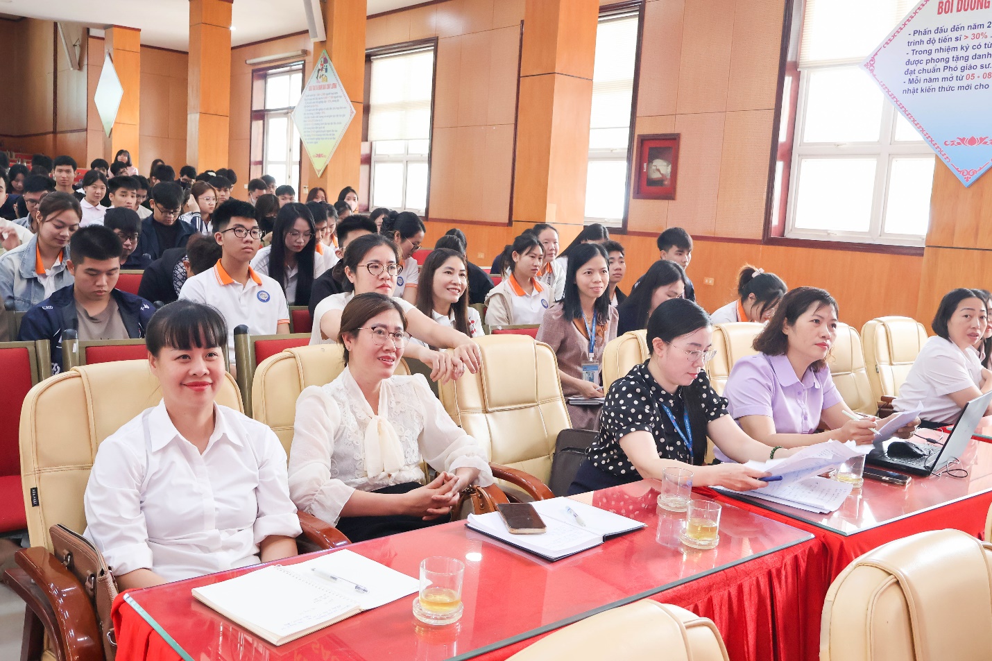 Dự và chủ trì hội thảo có NGƯT. TS. Nguyễn Trọng Các – Phó Bí thư Đảng ủy; các đồng chí là trưởng các phòng, khoa; toàn thể giảng viên khoa Công nghệ thông tin, khoa Du lịch và Ngoại ngữ và đông đảo đại diện sinh viên là Lớp trưởng, Bí thư đoàn các lớp trong toàn trường.
