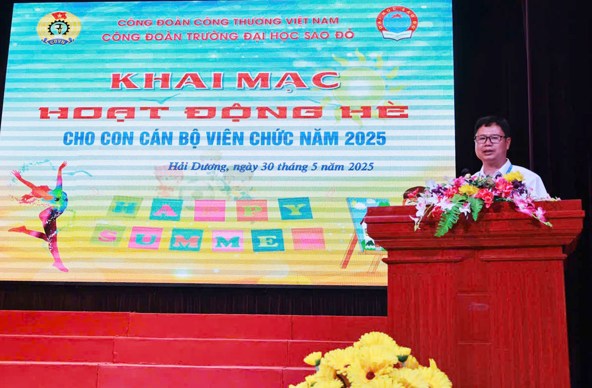 Phát biểu khai mạc, đồng chí Cao Văn Biên - Chủ tịch Công đoàn trường khẳng định: “Hoạt động hè cho con cán bộ viên chức Nhà trường là hoạt động ý nghĩa, thể hiện sự quan tâm của Đảng ủy, Ban Giám hiệu và tổ chức Công đoàn đối với đời sống tinh thần của cán bộ viên chức Nhà trường. Trong những năm qua, hoạt động hè đã được đông đảo cán bộ viên chức hưởng ứng và tạo điều kiện để các con tham gia. Năm 2025, Công đoàn Trường tiếp tục tổ chức các hoạt động dành cho các con của cán bộ viên chức, nhằm tạo sân chơi lành mạnh, bổ ích tạo nên không gian để các cháu được giao lưu, học tập, sáng tạo và phát triển các kỹ năng, đồng thời nâng cao đời sống tinh thần cho gia đình cán bộ viên chức Nhà trường, góp phần xây dựng cơ quan văn hóa, văn minh”.