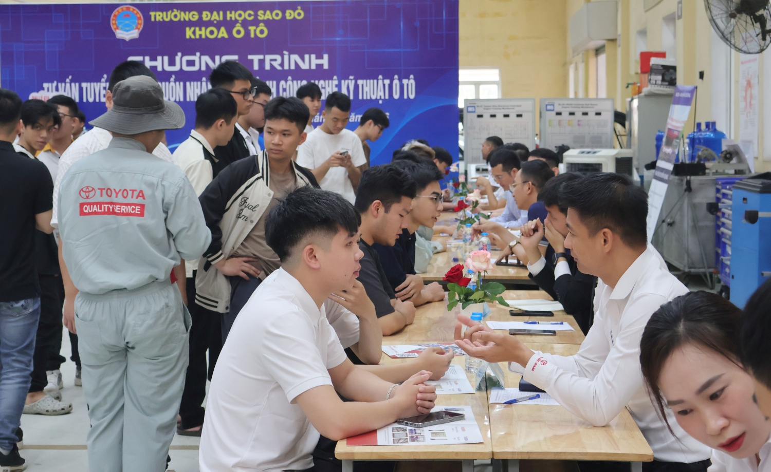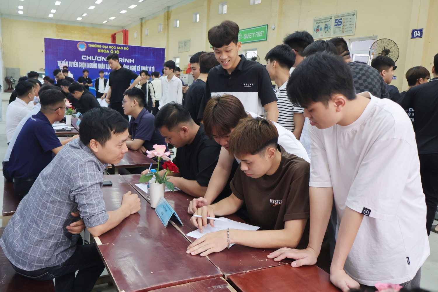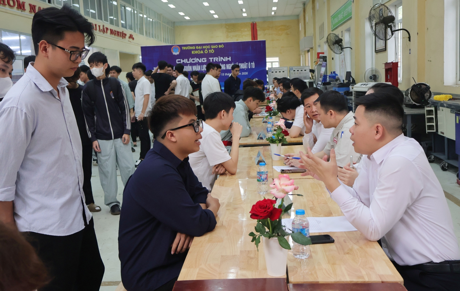 Nhằm tạo điều kiện cho sinh viên tìm hiểu thông tin một cách có hệ thống về doanh nghiệp và tìm được việc làm phù hợp với năng lực, chuyên môn ngay sau khi tốt nghiệp, sáng ngày 15/4/2026, Khoa Ô tô - Trường Đại học Sao Đỏ tổ chức chương trình tư vấn tuyển chọn nguồn nhân lực ngành Công nghệ kỹ thuật ô tô.