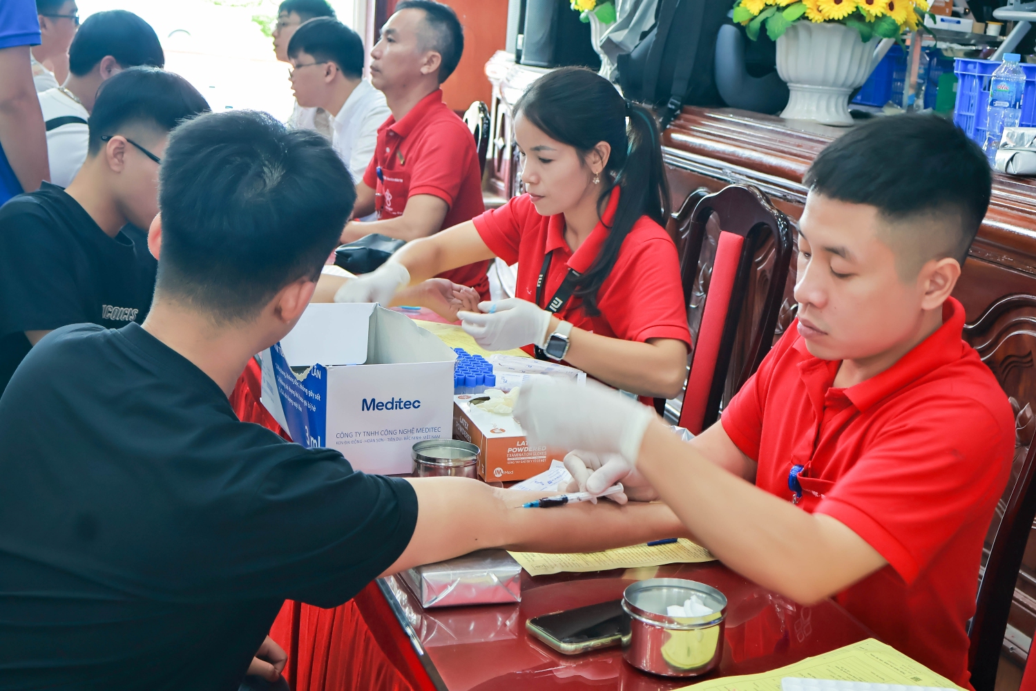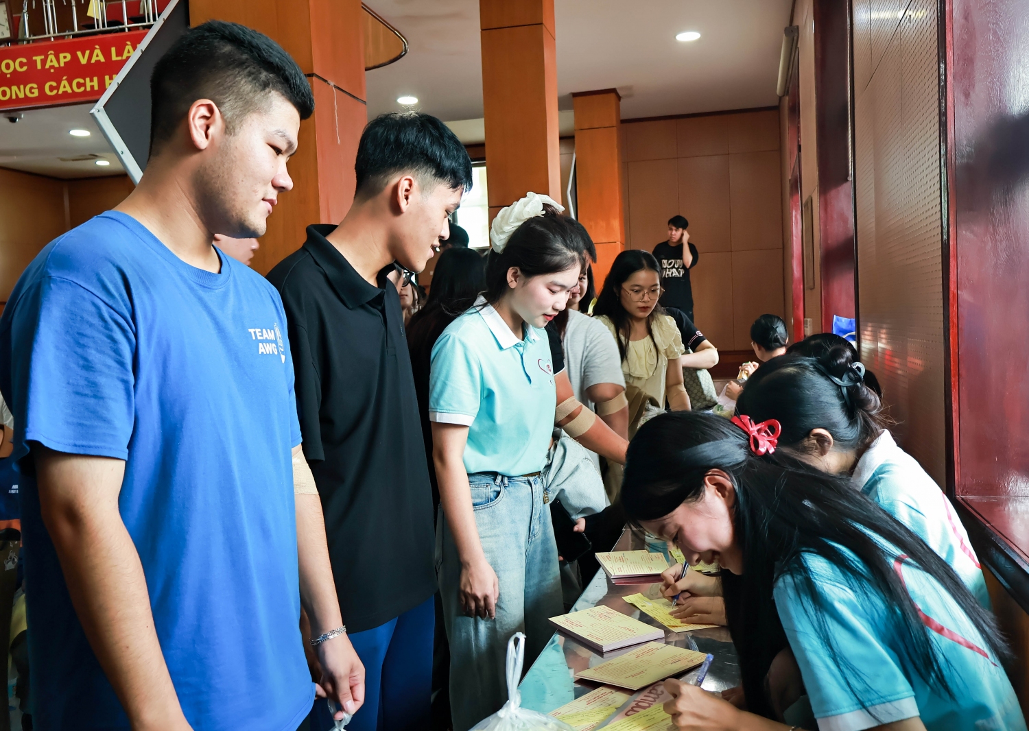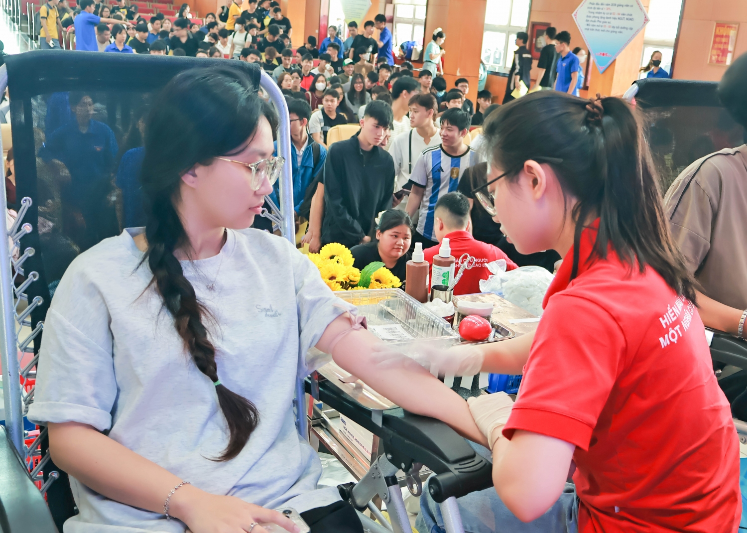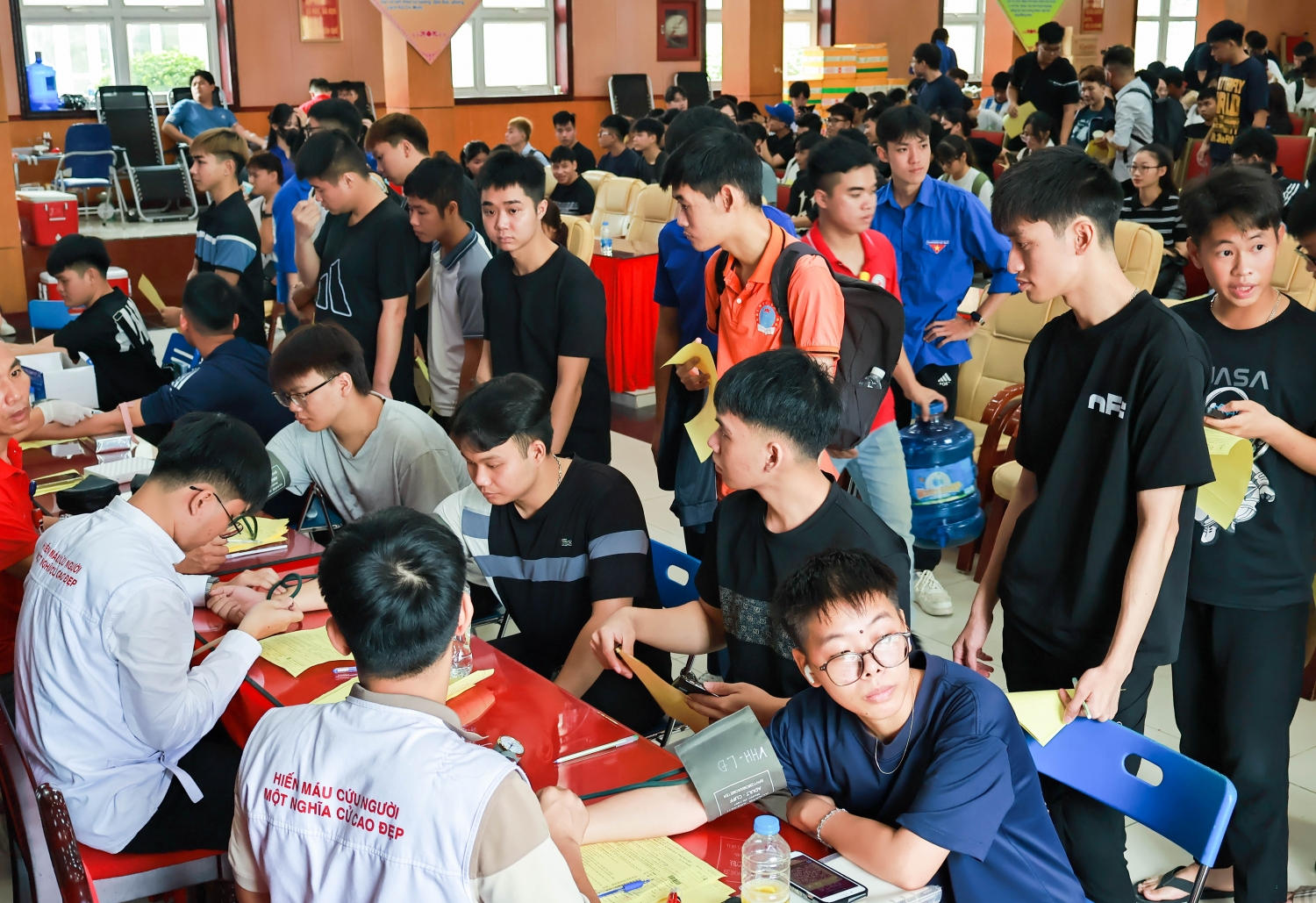 Chương trình “Hiến máu tình nguyện năm 2025” đã thu hút gần 1700 viên chức và sinh viên toàn trường đăng ký tham gia. Từ sáng sớm, tại khu vực ngoài và trong hội trường nhà C đã có mặt đông đảo viên chức và sinh viên xếp hàng làm các thủ tục trước khi hiến máu. Tại đây, đội Thanh niên xung kích của Nhà trường cùng các y bác sĩ Viện Huyết học truyền máu Trung ương hướng dẫn viên chức và sinh viên điền các thông tin cá nhân trong tờ đăng ký hiến máu, tiến hành đo huyết áp, kiểm tra cân nặng, xét nghiệm sàng lọc máu... các thủ tục hiến máu được thực hiện theo quy trình nhanh gọn, chính xác và an toàn.