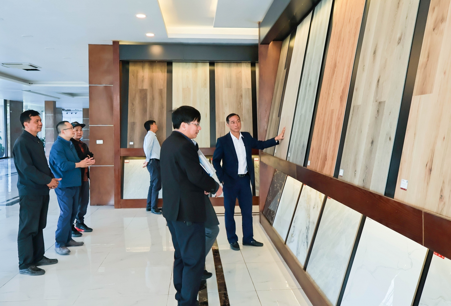 Bà Vũ Thị Sa – Tổng Giám đốc Công ty TNHH Nice Ceramic thảo luận tại buổi làm việc