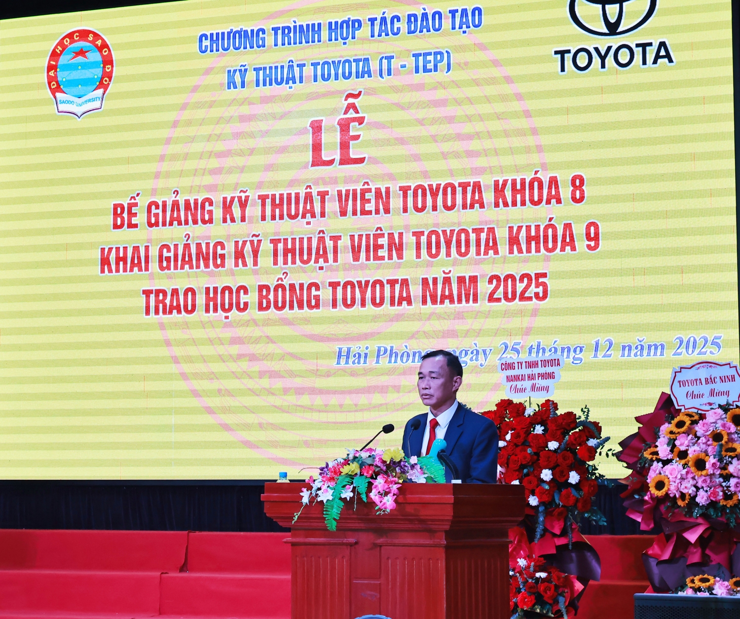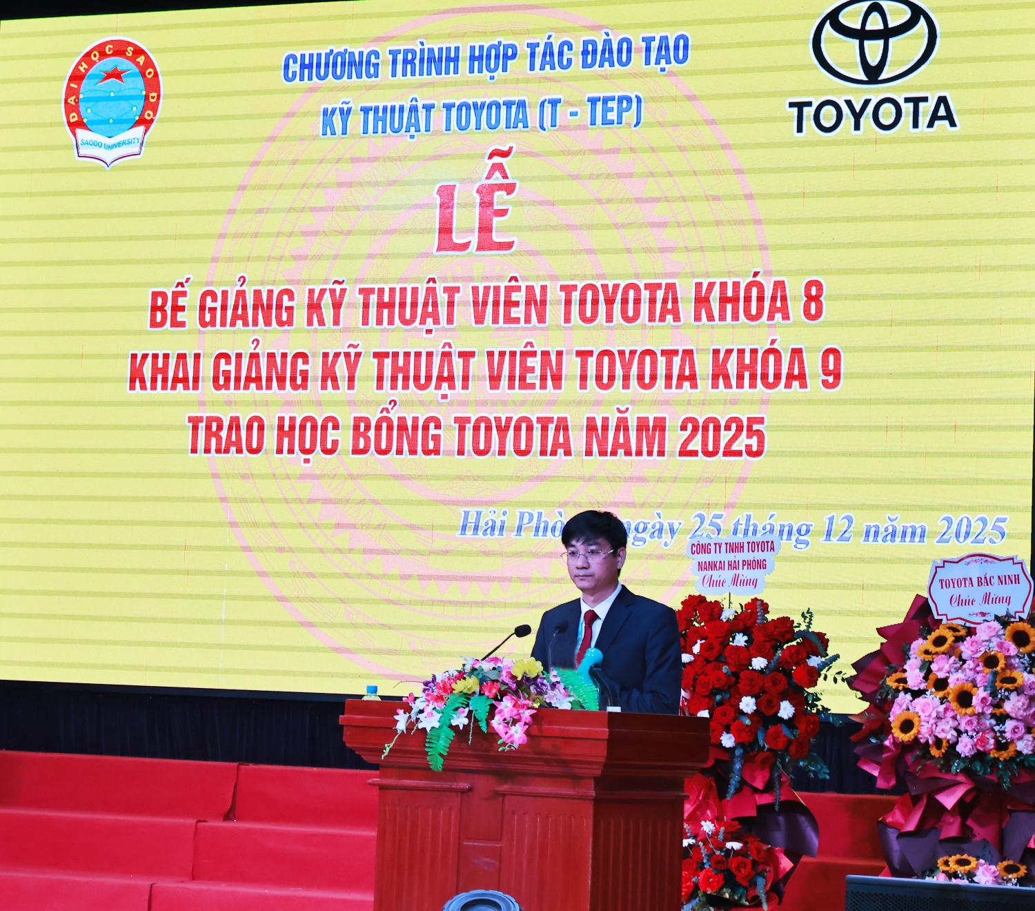 TS. Đỗ Văn Đỉnh - Phó Hiệu trưởng cảm ơn sự đồng hành của Công ty Toyota Việt Nam và các đại lý đã hợp tác đào tạo cũng như sử dụng nguồn nhân lực sau đào tạo của Nhà trường. Tiếp bước các học viên đã trưởng thành, mong các học viên khóa mới sẽ phấn đấu, rèn luyện để có kỹ năng nghề nghiệp vững vàng, đóng góp cho sự phát triển chung của ngành công nghiệp ô tô nước nhà.