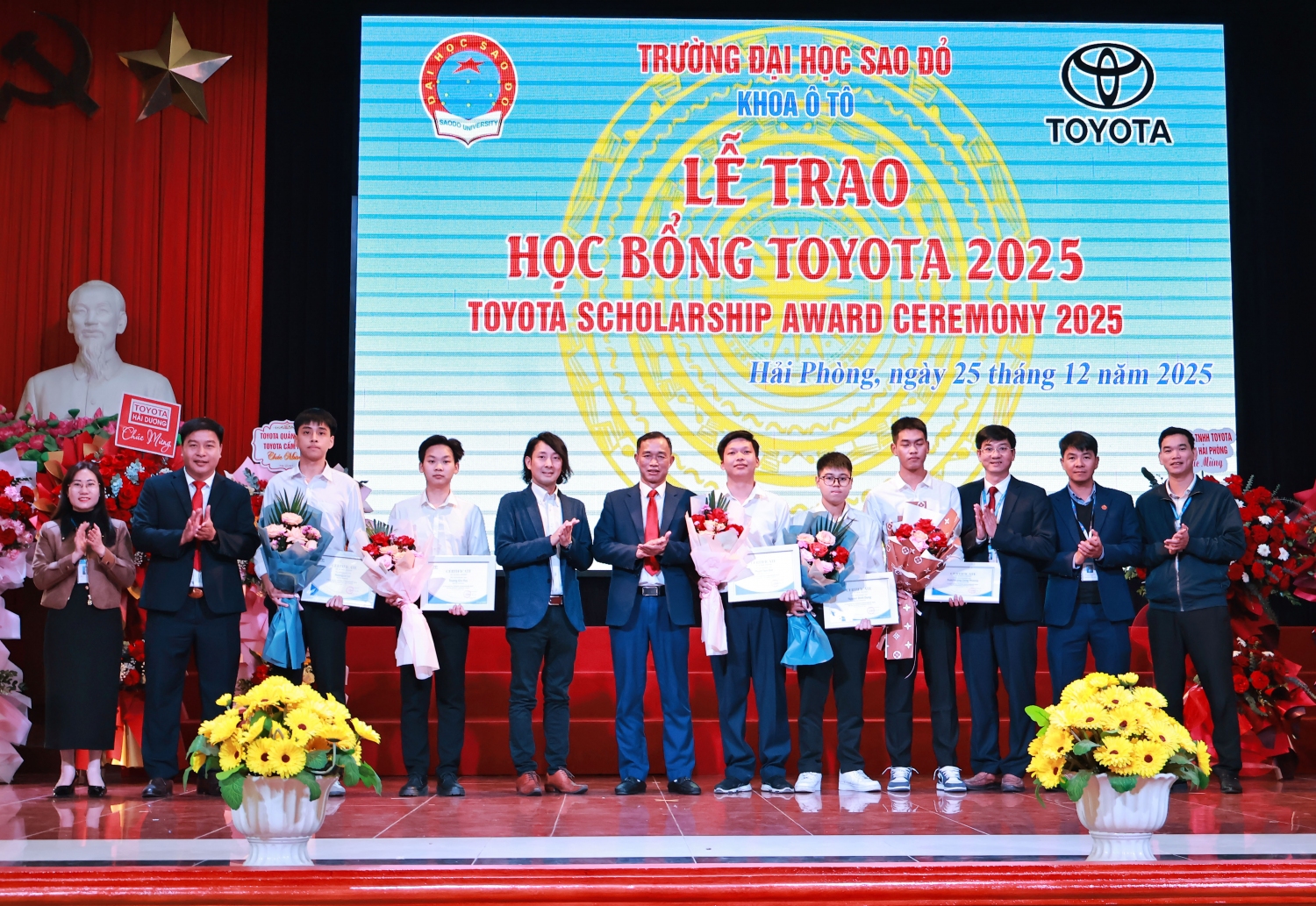 Nhằm khuyến khích, nâng cao tinh thần học tập trong sinh viên, Bộ Giáo dục và Đào tạo phối hợp với Công ty Toyota Việt Nam triển khai chương trình Học bổng Toyota năm học 2025-2026 dành cho 123 sinh viên của 18 trường đại học trên cả nước đạt thành tích cao trong học tập và nghiên cứu khoa học. 05 sinh viên Trường Đại học Sao Đỏ với thành tích xuất sắc trong học tập, nổi bật trong các phong trào thanh niên đã được Ban tổ chức lựa chọn trao học bổng tại lễ khai giảng. Đây là nguồn động viên giúp các em cố gắng hơn nữa trong học tập, phấn đấu trở thành những kỹ thuật viên xuất sắc của ngành công nghệ kỹ thuật ô tô trong tương lai.