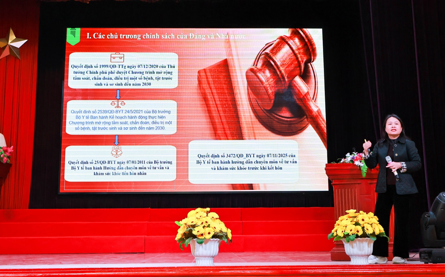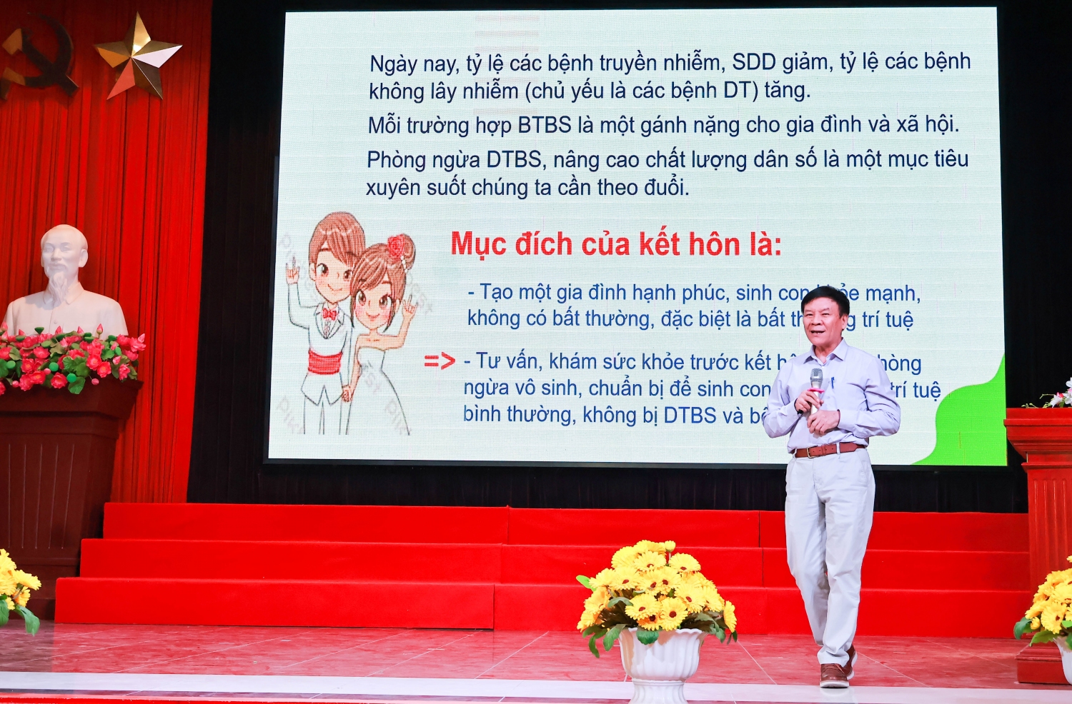 Tại hội thảo, chuyên gia cao cấp Đỗ Thị Quỳnh Hương đã thông tin đến sinh viên các chủ trương chính sách của Đảng và Nhà nước về công tác dân số, hôn nhân gia đình và các quyết định đã ban hành của Bộ Y tế về nâng cao sức khỏe thể chất và tinh thần giáo dục sức khỏe sinh sản và giáo dục tiền hôn nhân cho thanh niên.