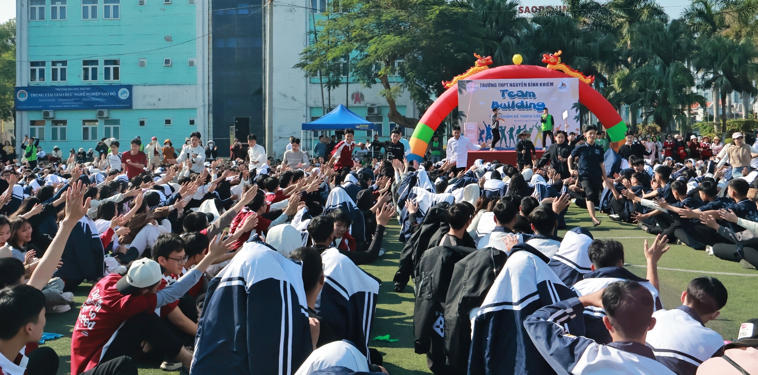 Tại chương trình thăm quan, trải nghiệm, học sinh được tham gia hoạt động Team building với chủ đề chơi để học. Sau một số trò chơi khởi động, các đội tham gia trò chơi theo hiệu lệnh của hoạt náo viên như: Đua rùa; thú nhún; tha mồi về tổ; bóng kết hợp …. Các phần chơi vận động không chỉ thể hiện sự dẻo dai, nhanh nhẹn mà còn cho thấy tinh thần đoàn kết của từng thành viên trong mỗi đội. Hoạt động Team building đã thu hút sự tham gia và cổ vũ đông đảo của các thầy, cô giáo, phụ huynh. Những gương mặt rạng rỡ và tiếng cười vui gắn kết các thành viên trong mỗi đội chơi, giúp tăng thêm tinh thần đoàn kết, sự giao lưu, học hỏi và những ấn tượng tốt đẹp dưới mái Trường Đại học Sao Đỏ.