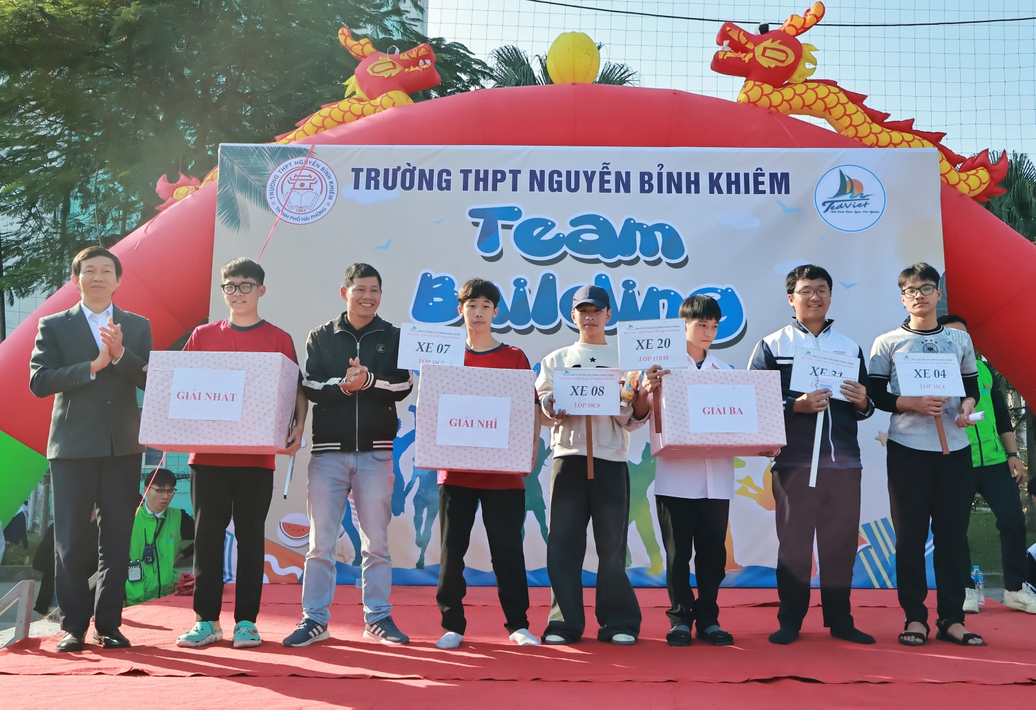 Về phía Trường THPT Nguyễn Bỉnh Khiêm có thầy Tống Công Thương - Hiệu trưởng cùng các thầy giáo, cô giáo, đại diện phụ huynh và toàn thể học sinh khối 10, 11, 12 của Trường. Tiếp đoàn, về phía Trường Đại học Sao Đỏ có TS Đỗ Văn Đỉnh - Phó Hiệu trưởng cùng đại diện các phòng, khoa trong Nhà trường.