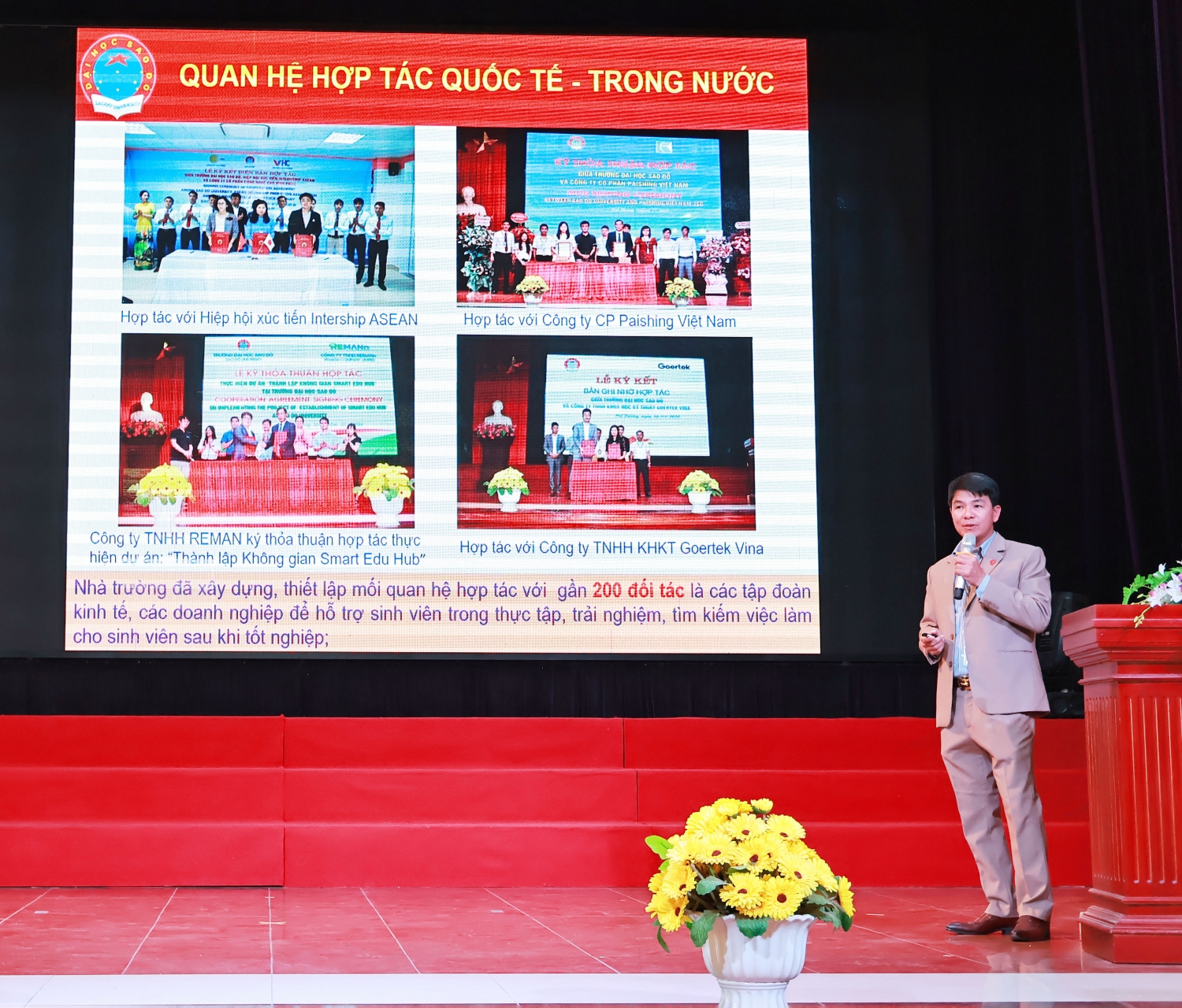 Sau chương trình team building, các thầy, cô giáo và học sinh đã đi thăm quan cơ sở vật chất và trải nghiệm tại các Trung tâm thực hành - thực nghiệm của các Khoa. Đặc biệt học sinh lớp 12 đã được nghe thầy Tạ Hồng Phong - Trưởng phòng Quản lý chất lượng giới thiệu tổng quát về Trường Đại học Sao Đỏ; quá trình phát triển Nhà trường; cơ sở vật chất; đội ngũ cán bộ viên chức, giảng viên; quy mô đào tạo và đặc biệt giới thiệu về các ngành đào tạo hiện nay... Đồng thời có những định hướng chuyên sâu về ngành nghề phù hợp với nhu cầu xã hội hiện nay, giúp các em học sinh nắm bắt được thông tin cần thiết và có thêm lựa chọn về nghề nghiệp trong tương lai.