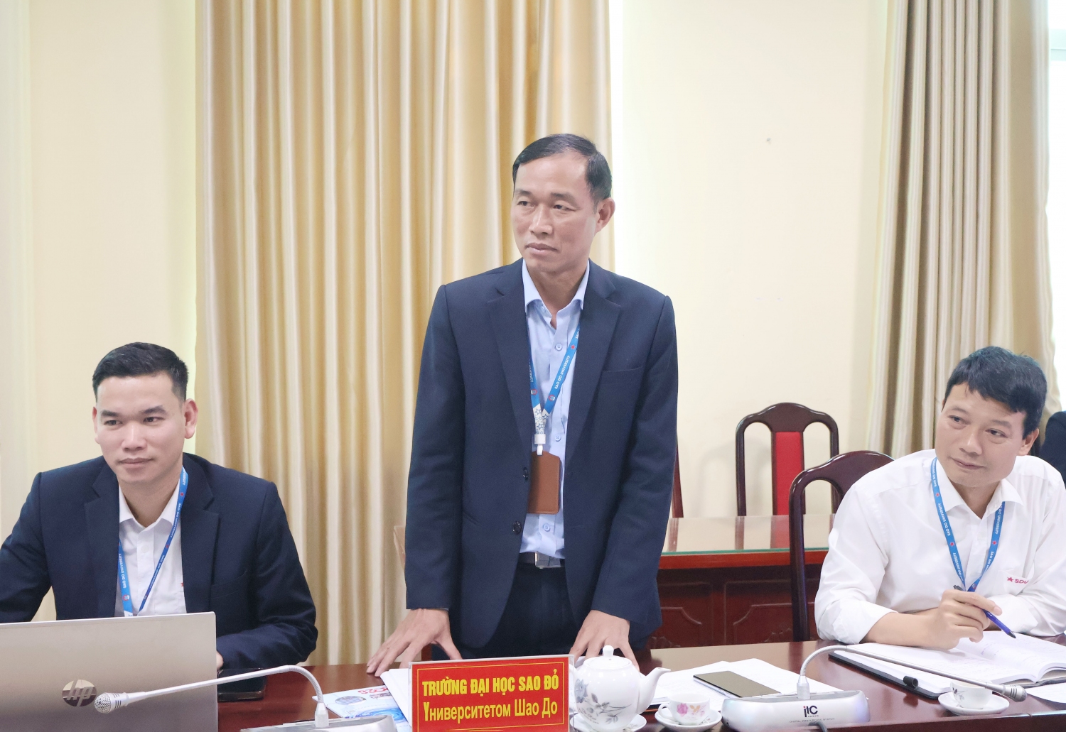 Tại buổi làm việc, TS. Đỗ Văn Đỉnh - Phó Hiệu trưởng đã giới thiệu tổng quan về Trường Đại học Sao Đỏ. Hiện nay, Nhà trường đang đào tạo 21 ngành, quy mô đào tạo ổn định và giữ vững. Sinh viên nhà trường được học tập trong môi trường có cơ sở vật chất khang trang, hiện đại. Nhà trường luôn chú trọng đến công tác đào tạo, các kỹ năng nghề nghiệp, kỹ năng mềm giúp cho chất lượng ngày càng được nâng cao. Đặc biệt, Nhà trường luôn quan tâm đến vấn đề trải nghiệm thực tập, trao đổi sinh viên,… tạo cơ hội việc làm cho sinh viên, vì vậy Nhà trường mong muốn hợp tác với các trường trên nhiều mặt công tác.