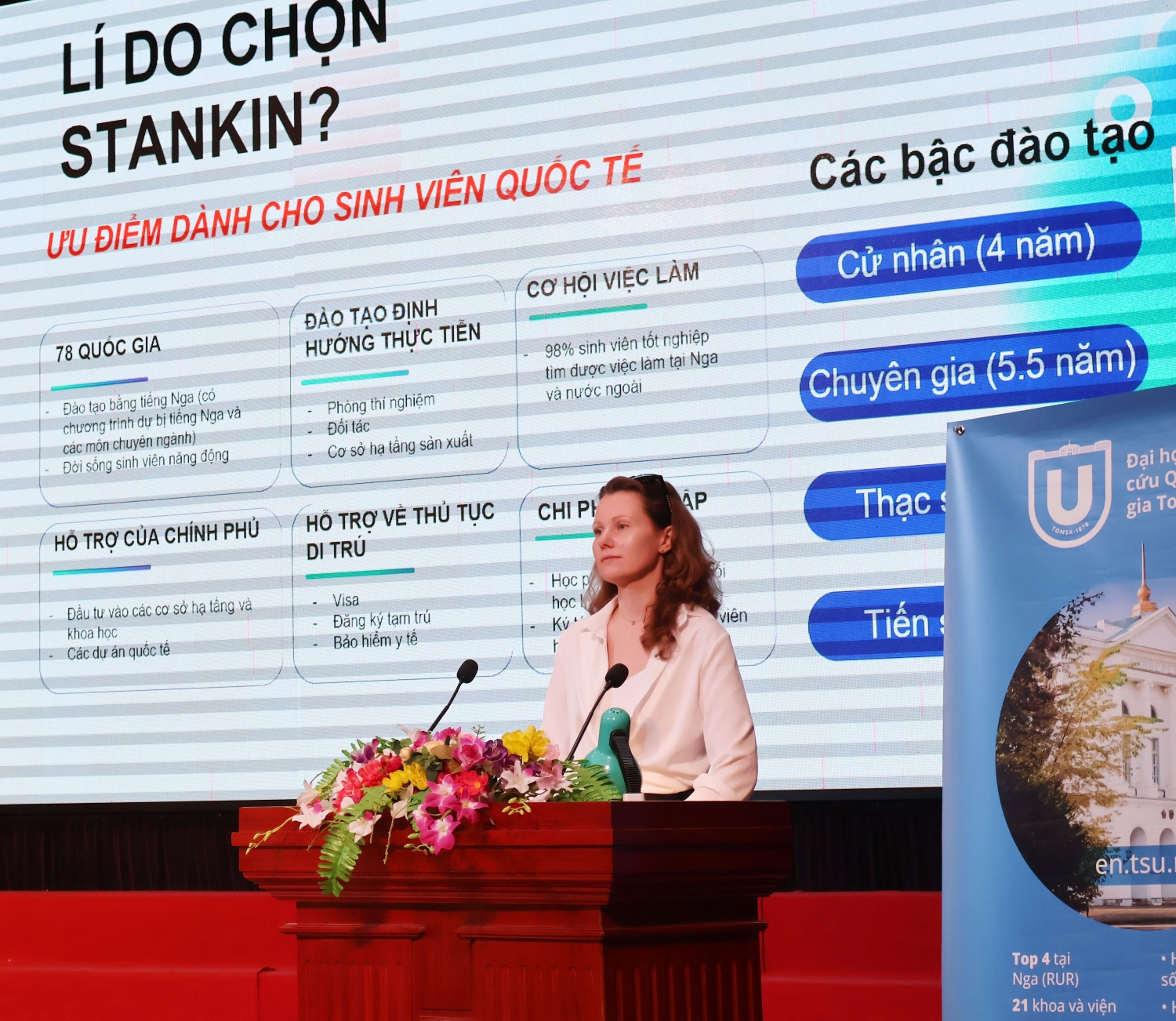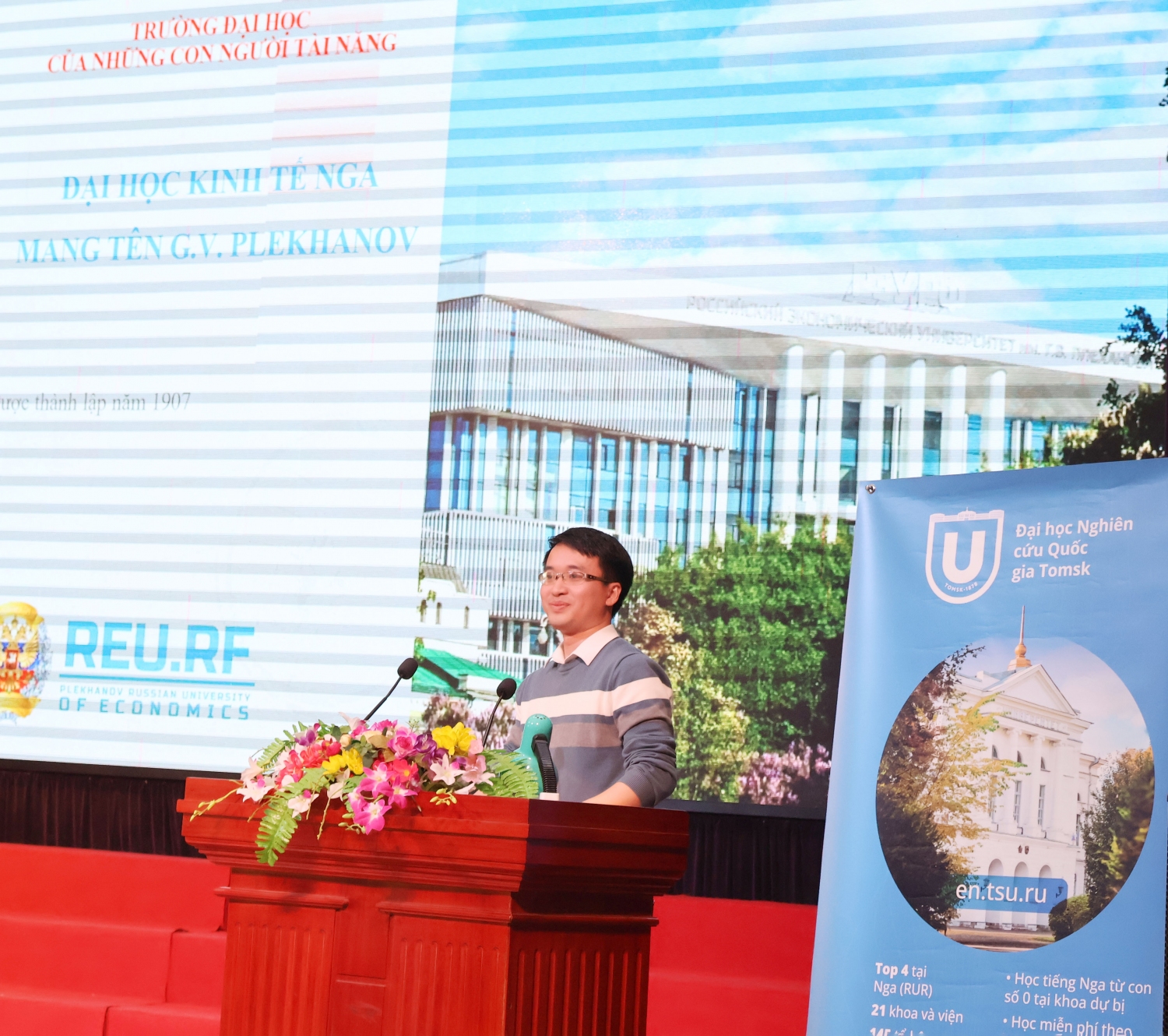 Sau buổi làm việc, các trường Đại học của Liên bang Nga đã có buổi gặp gỡ, giao lưu với sinh viên Nhà trường, giới thiệu đến sinh viên về chương trình tuyển sinh học tập tại các trường Đại học tại Nga với nhiều các học bổng hỗ trợ và tạo điều kiện nhất với sinh viên Trường Đại học Sao Đỏ.
