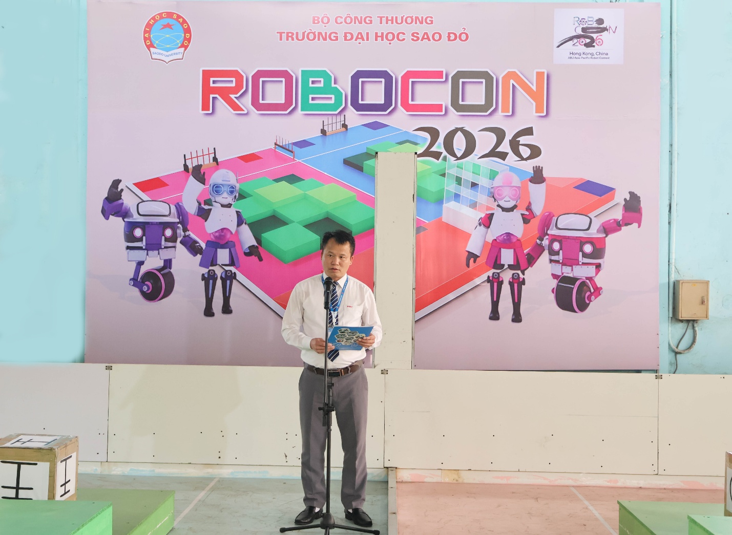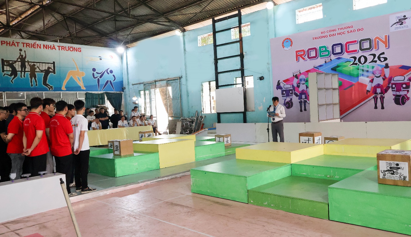 Phát biểu khai mạc cuộc thi, NGƯT. TS. Nguyễn Trọng Các khẳng định: “Đây là lần thứ 20, các đội tuyển robocon Nhà trường tham gia Cuộc thi sáng tạo Robot Việt Nam do Đài truyền hình Việt Nam tổ chức. Cuộc thi không chỉ là sân chơi công nghệ mà còn là môi trường thực hành, trải nghiệm thực tế. Nơi sinh viên khối kỹ thuật có cơ hội hiện thực hóa ý tưởng thành sản phẩm cụ thể, vận dụng kiến thức đã học để giải quyết bài toán kỹ thuật. Đồng thời cũng là nơi hội tụ đam mê, bản lĩnh, trí tuệ và khát vọng chinh phục KHCN của sinh viên Trường Đại học Sao Đỏ”.