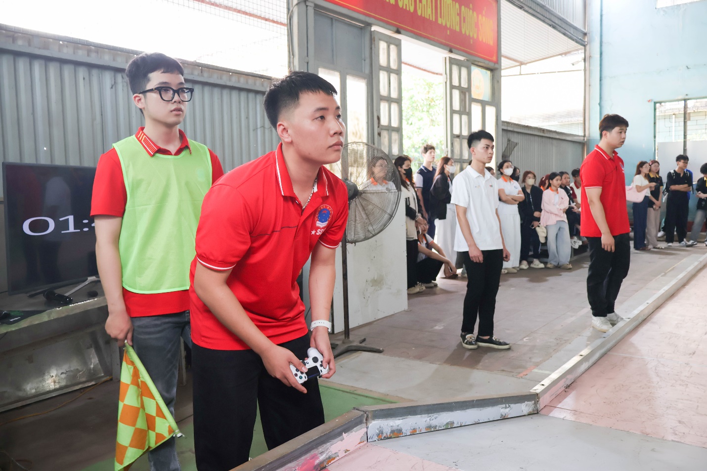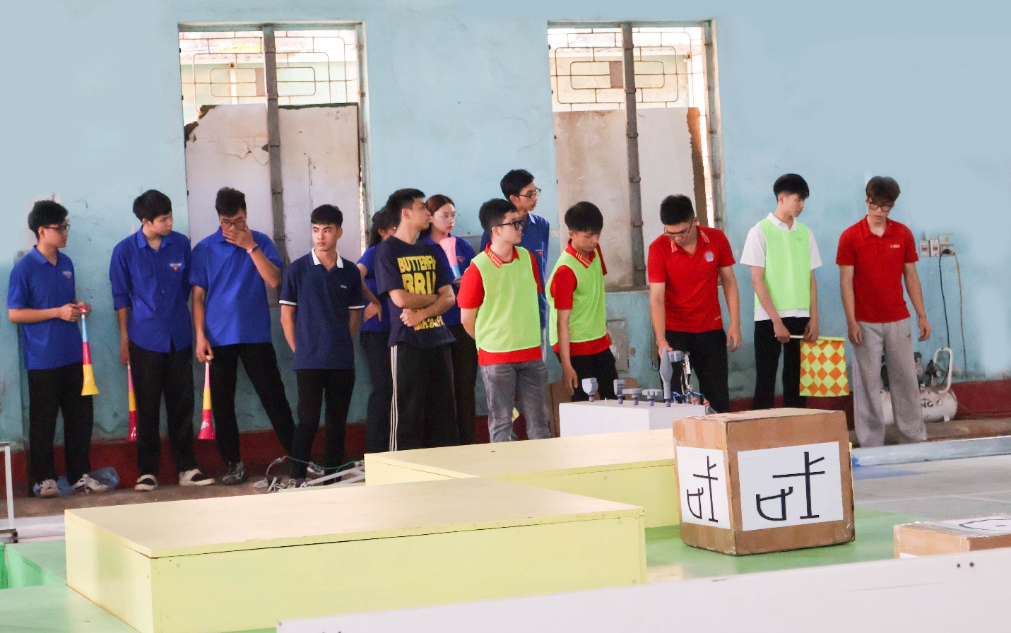 Tại cuộc thi, Ban Tổ chức đã tổ chức 10 trận đấu, mỗi trận kéo dài 3 phút, với hình thức thi đấu vòng tròn tính điểm giữa 5 đội. Các đội tham gia với tinh thần quyết tâm cao, hướng tới thành tích tốt nhất. Nổi bật trong số đó là hai đội thuộc khoa Điện là Điện 1 và Điện 2 được ví như những “chiến binh công nghệ”. Trên sân thi đấu, hai đội đã cống hiến nhiều trận đấu kịch tính, thể hiện rõ chiến thuật và sự sáng tạo. Kết thúc cuộc thi, Điện 1 và Điện 2 có số điểm bằng nhau và cùng giành giải Ba.