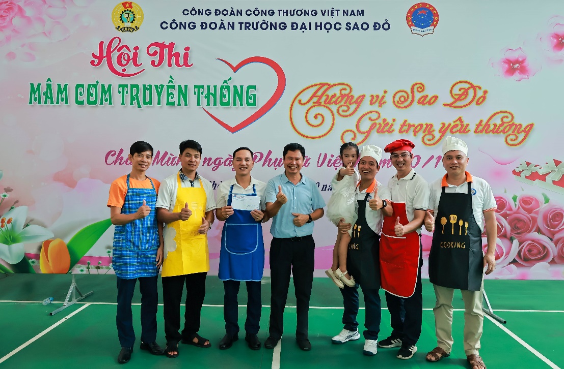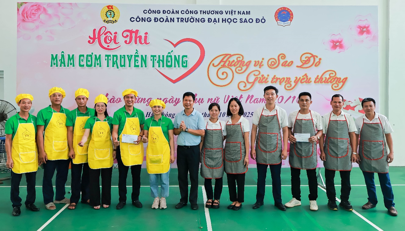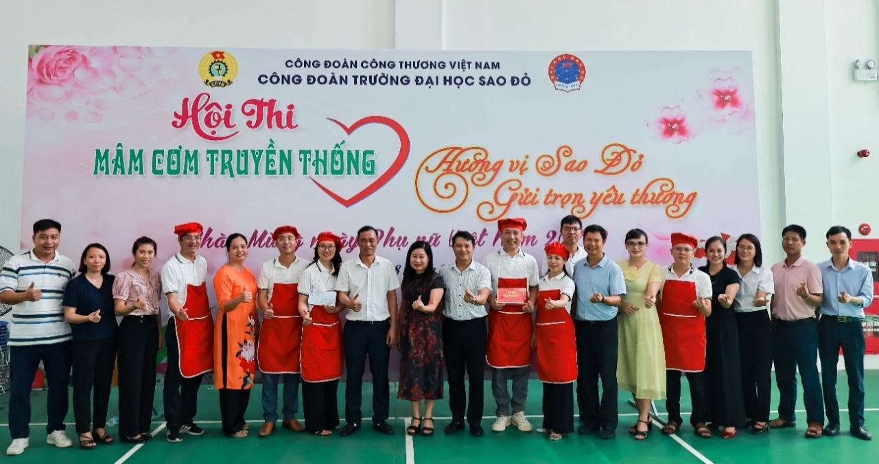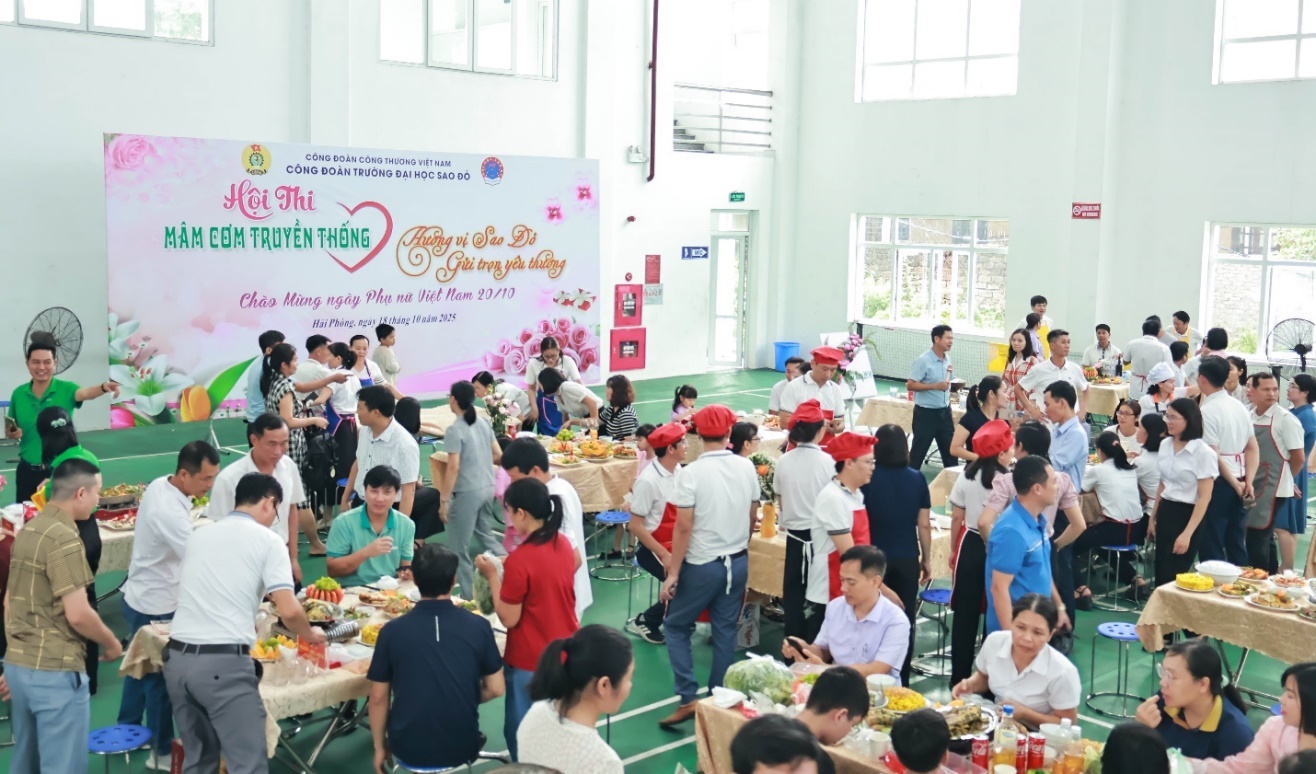 Chào mừng kỷ niệm 95 năm ngày thành lập Hội Liên hiệp Phụ nữ Việt Nam (20/10/1930-20/10/2025), Công đoàn Trường Đại học Sao Đỏ đã tổ chức Hội thi “Mâm cơm truyền thống” với chủ đề “Hương vị Sao Đỏ gửi trọn yêu thương”. Hội thi đã thu hút 10 đội tham gia, mỗi đội gồm 6 thành viên (trong đó 4 nam công và 2 nữ công) đặc biệt các nam công là những đầu bếp chính.