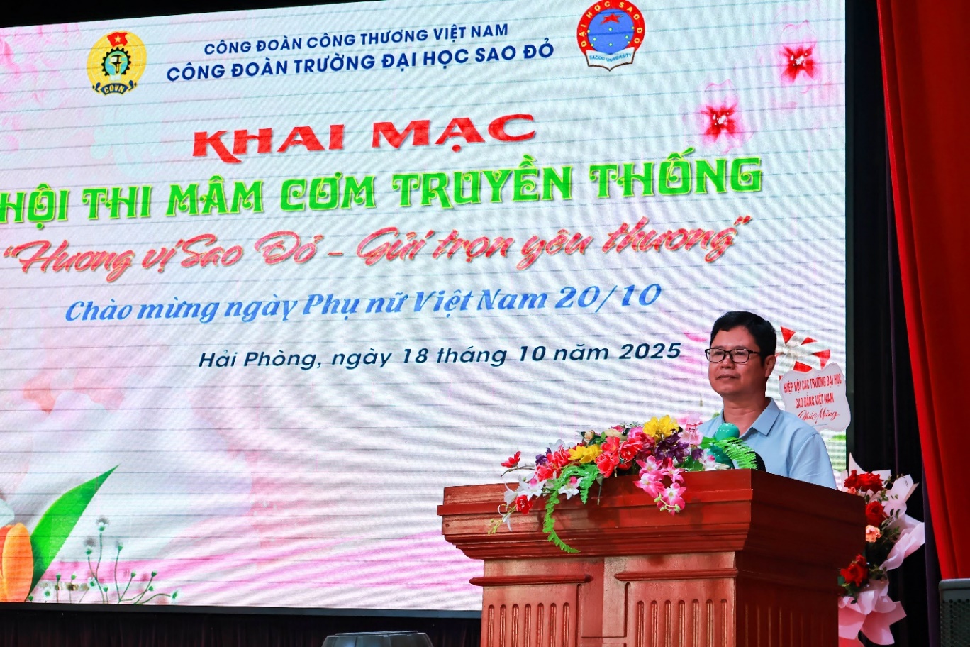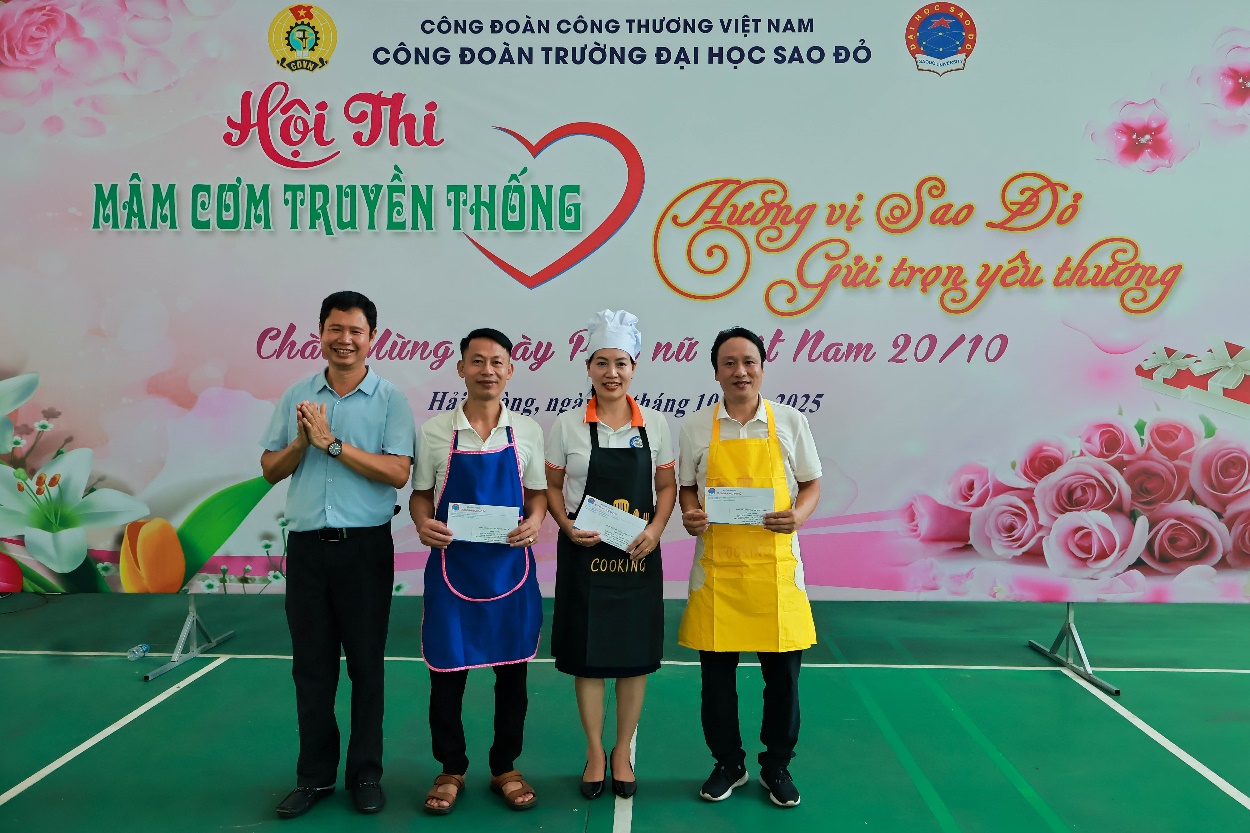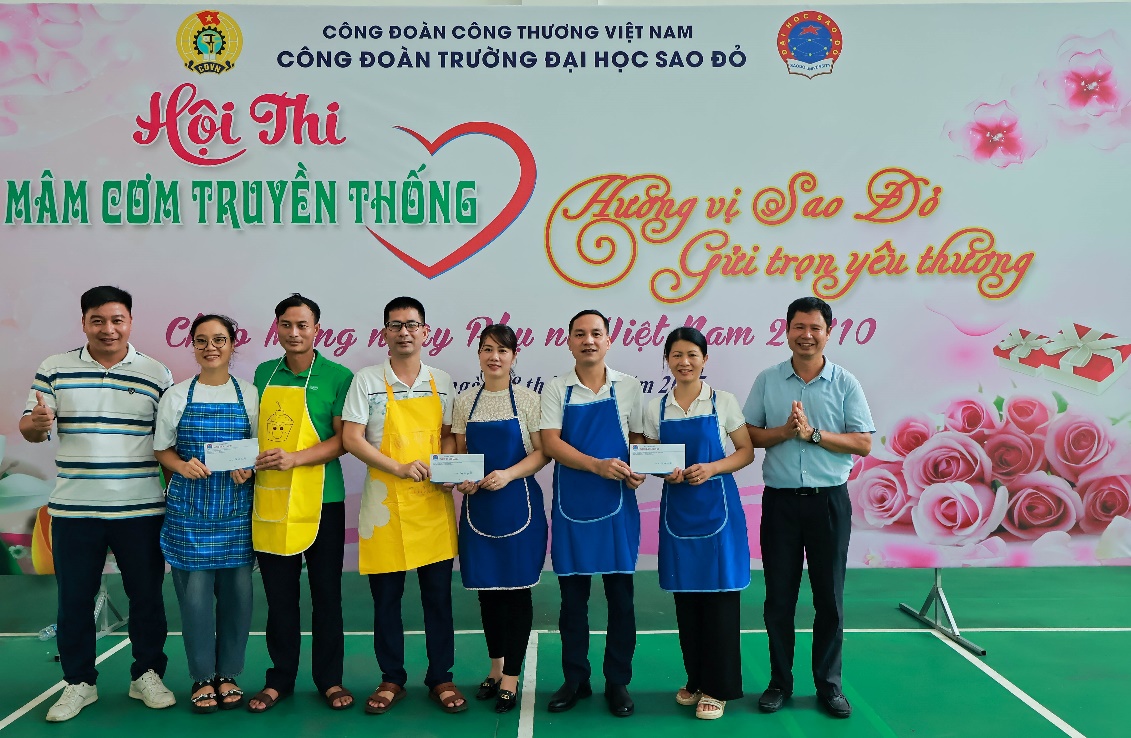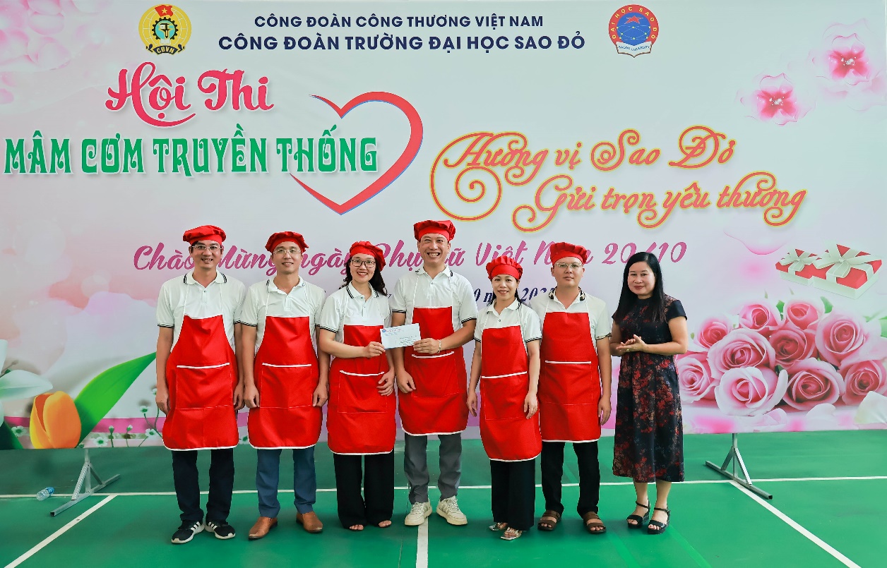 Chào mừng kỷ niệm 95 năm ngày thành lập Hội Liên hiệp Phụ nữ Việt Nam (20/10/1930-20/10/2025), Công đoàn Trường Đại học Sao Đỏ đã tổ chức Hội thi “Mâm cơm truyền thống” với chủ đề “Hương vị Sao Đỏ gửi trọn yêu thương”. Hội thi đã thu hút 10 đội tham gia, mỗi đội gồm 6 thành viên (trong đó 4 nam công và 2 nữ công) đặc biệt các nam công là những đầu bếp chính.