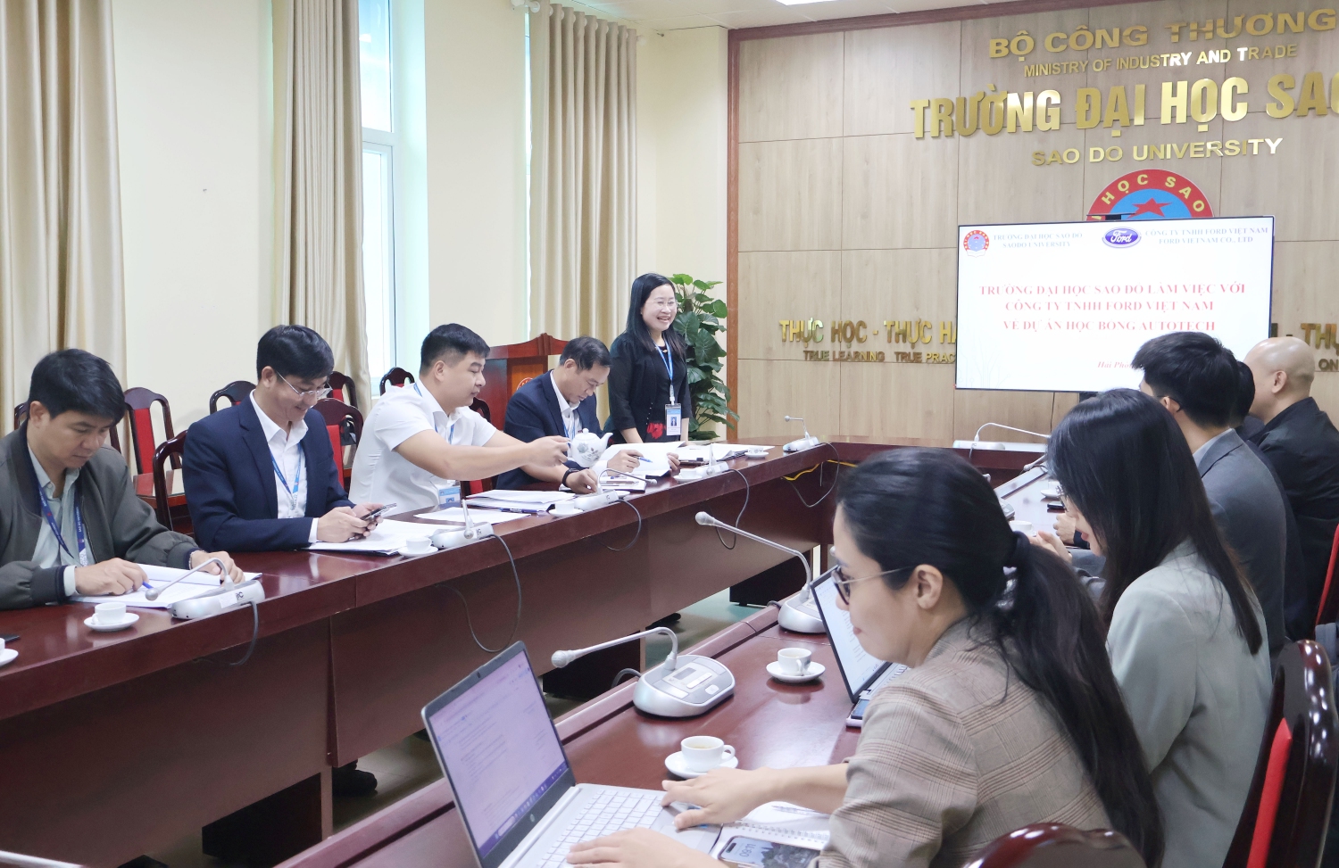 Trong những năm qua, mối quan hệ hợp tác giữa Trường Đại học Sao Đỏ và Công ty TNHH Ford Việt Nam đã từng bước được hình thành và phát triển bền chặt. Năm 2023, Ford Việt Nam đã trao tặng Nhà trường 02 động cơ EcoBoost phục vụ công tác giảng dạy và thực hành cho sinh viên ngành Công nghệ kỹ thuật ô tô, giúp sinh viên có cơ hội tiếp cận trực tiếp với công nghệ động cơ hiện đại. Tiếp nối mối quan hệ hợp tác đó, sáng ngày 11/3/2026, Nhà trường có buổi làm việc với công ty về dự án học bổng AutoTech.