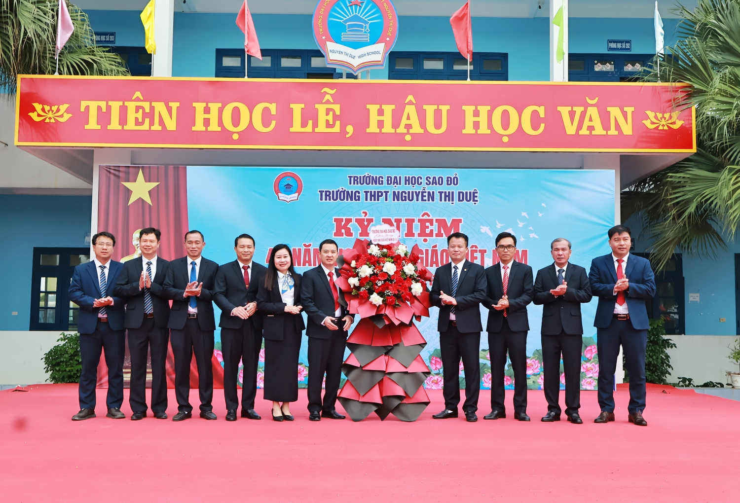 Phát biểu tại lễ kỷ niệm, NGƯT.TS. Nguyễn Thị Kim Nguyên - Hiệu trưởng Nhà trường nhấn mạnh: Ngày Nhà giáo Việt Nam 20/11, theo truyền thống của Nhà trường, tất cả các thế hệ cán bộ lãnh đạo, quản lý, các thế hệ thầy giáo, cô giáo, cán bộ viên chức Trường Đại học Sao Đỏ đều tụ hội để gặp gỡ, chung vui và chứng kiến sự phát triển, đổi thay theo từng năm tháng của Nhà trường. Đây cũng là dịp để các thế hệ thầy giáo, cô giáo, viên chức Nhà trường ôn lại những kỷ niệm, bày tỏ tình cảm với nơi mà tuổi trẻ, thời thanh xuân, cả cuộc đời các thầy, các cô, các bác, các anh, chị đã từng làm việc, cống hiến.