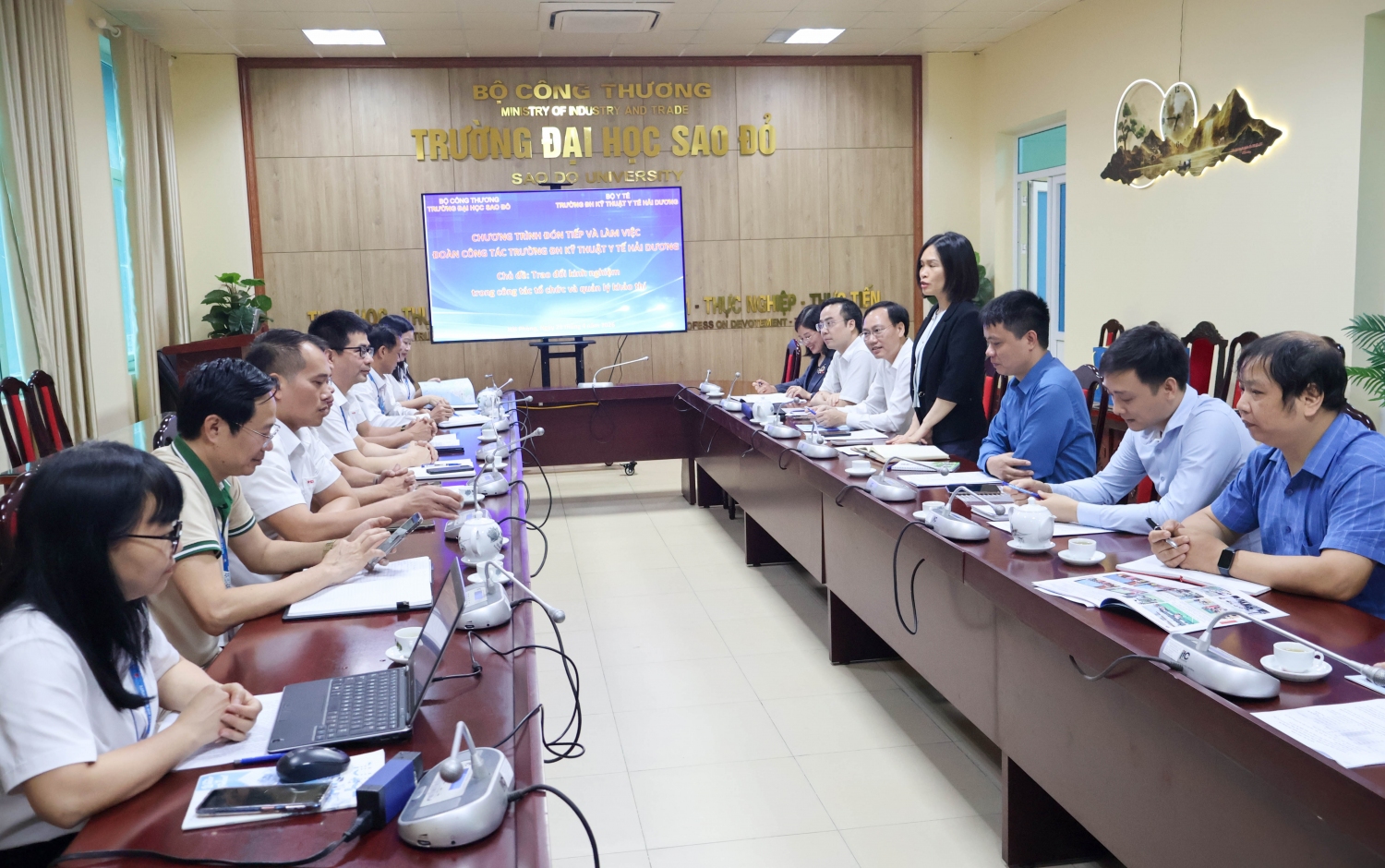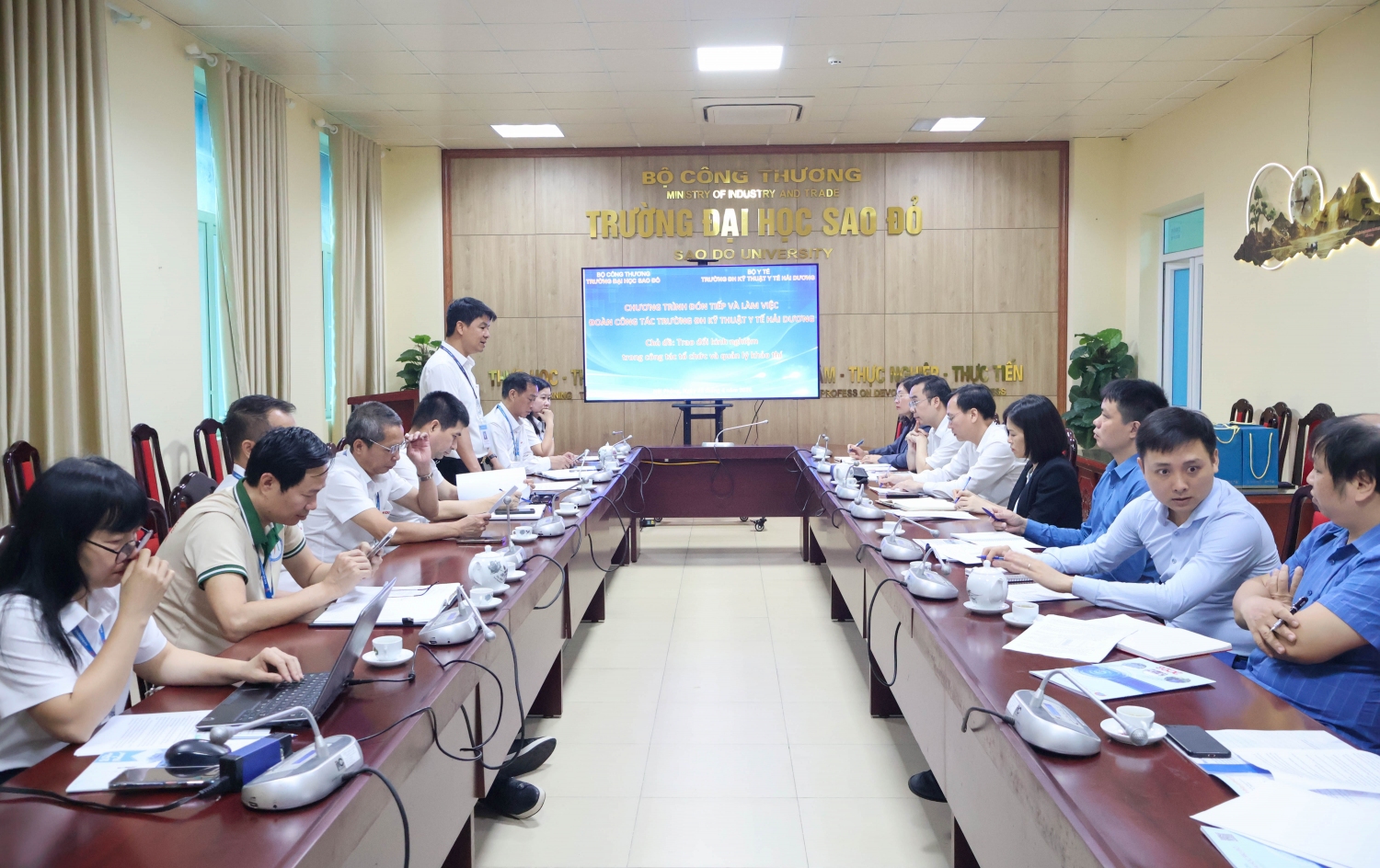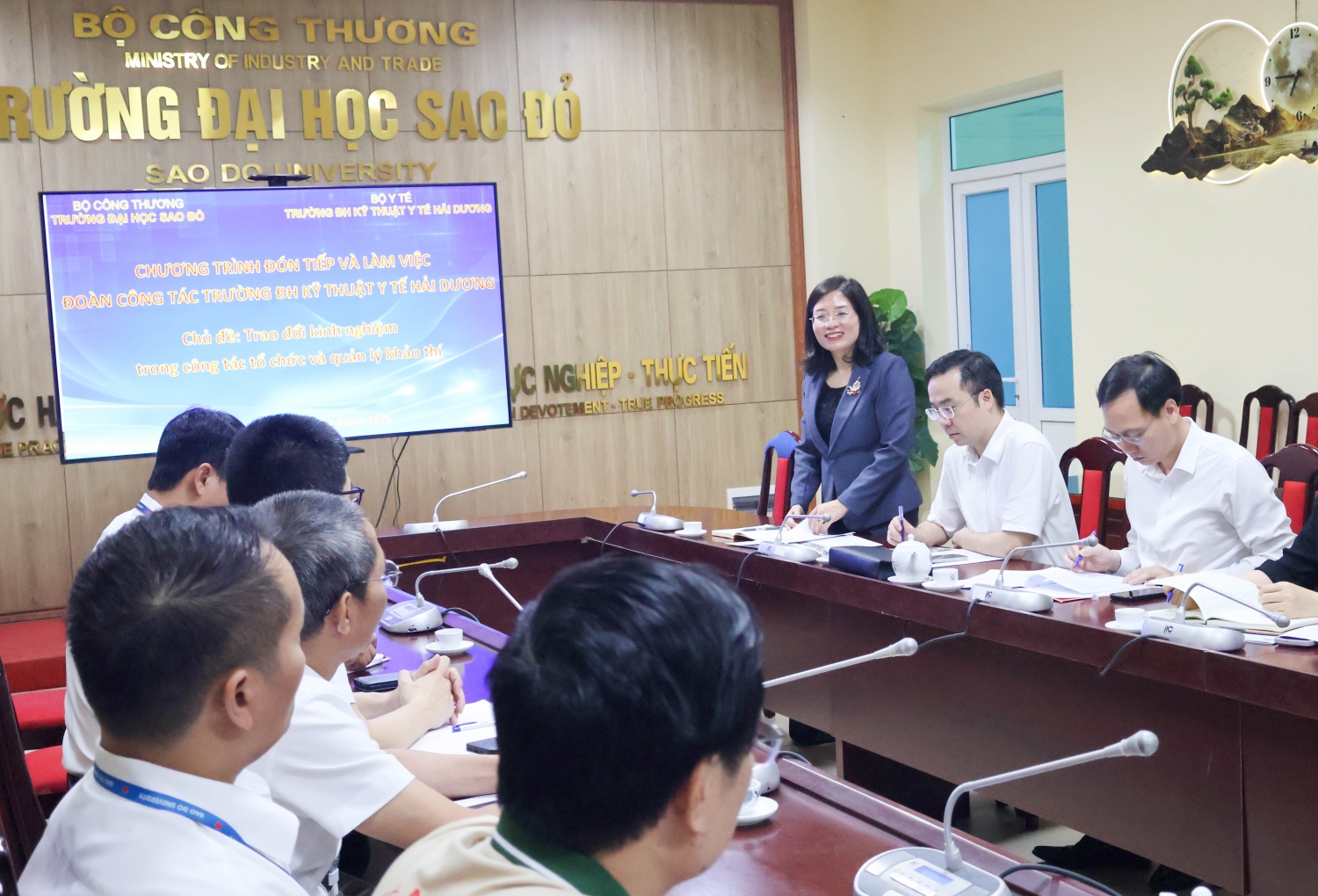 Buổi làm việc diễn ra trong không khí cởi mở, hiệu quả. Đại diện Trường Đại học Kỹ thuật Y tế Hải Dương đánh giá cao mô hình tổ chức thi trên máy tính của Trường Đại học Sao Đỏ, đồng thời bày tỏ mong muốn tiếp tục hợp tác, chia sẻ kinh nghiệm trong thời gian tới.
