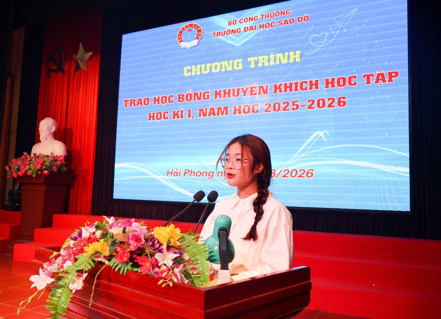 Chương trình trao học bổng khuyến khích học tập học kỳ I năm học 2025–2026 không chỉ là sự ghi nhận xứng đáng dành cho những sinh viên có thành tích nổi bật mà còn lan tỏa tinh thần học tập, rèn luyện tích cực trong toàn thể sinh viên Trường Đại học Sao Đỏ. Qua đó, góp phần tạo động lực để sinh viên tiếp tục nỗ lực, sáng tạo trong học tập và nghiên cứu khoa học, chuẩn bị hành trang vững chắc cho con đường lập thân, lập nghiệp trong tương lai.